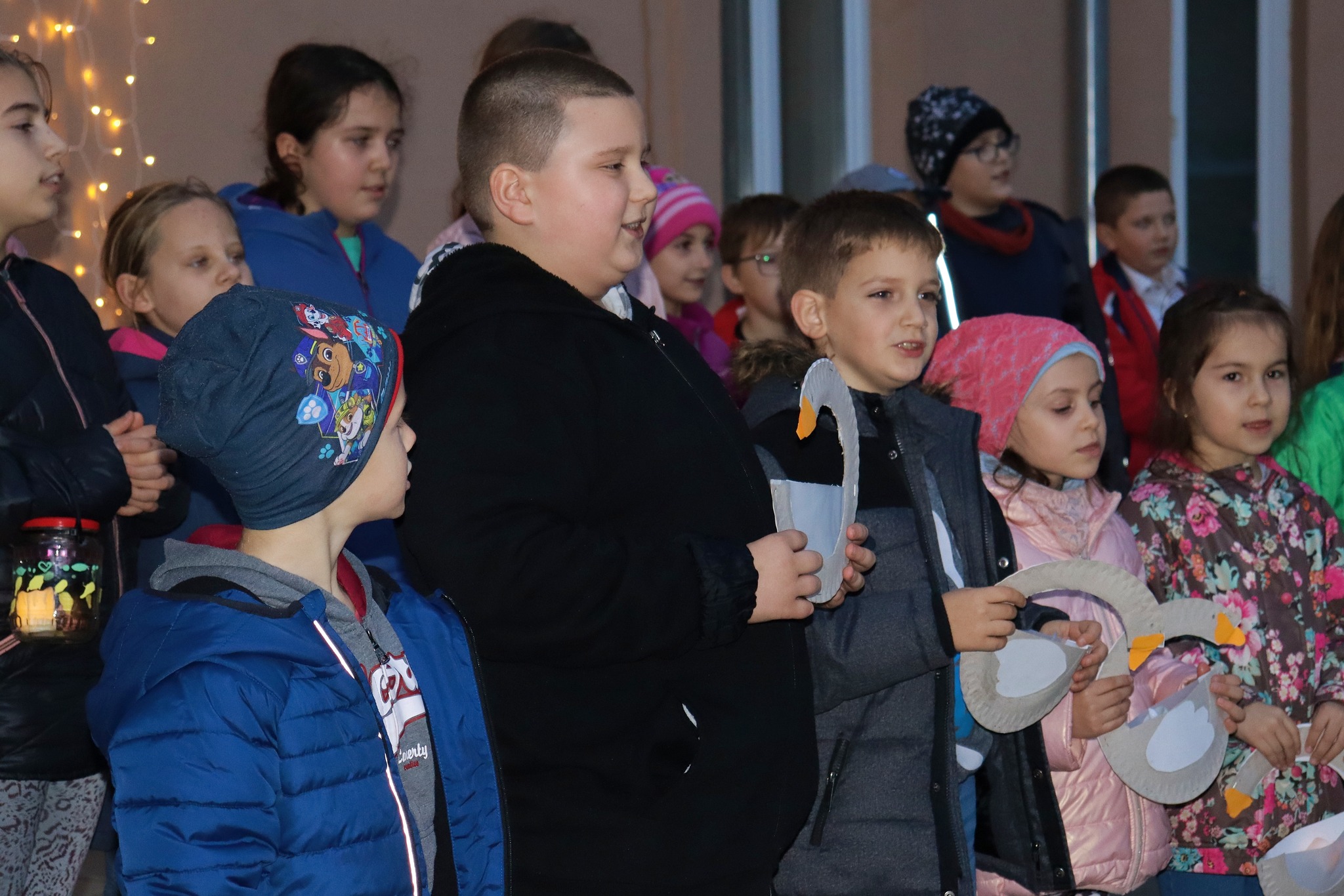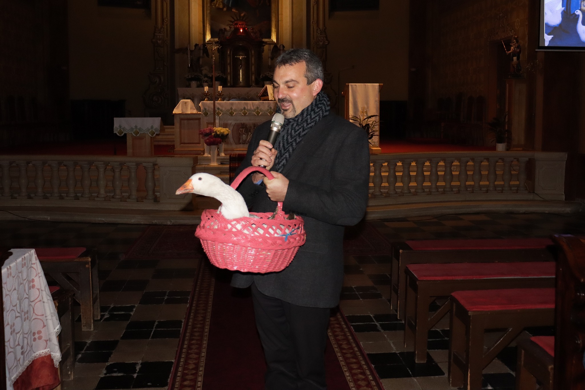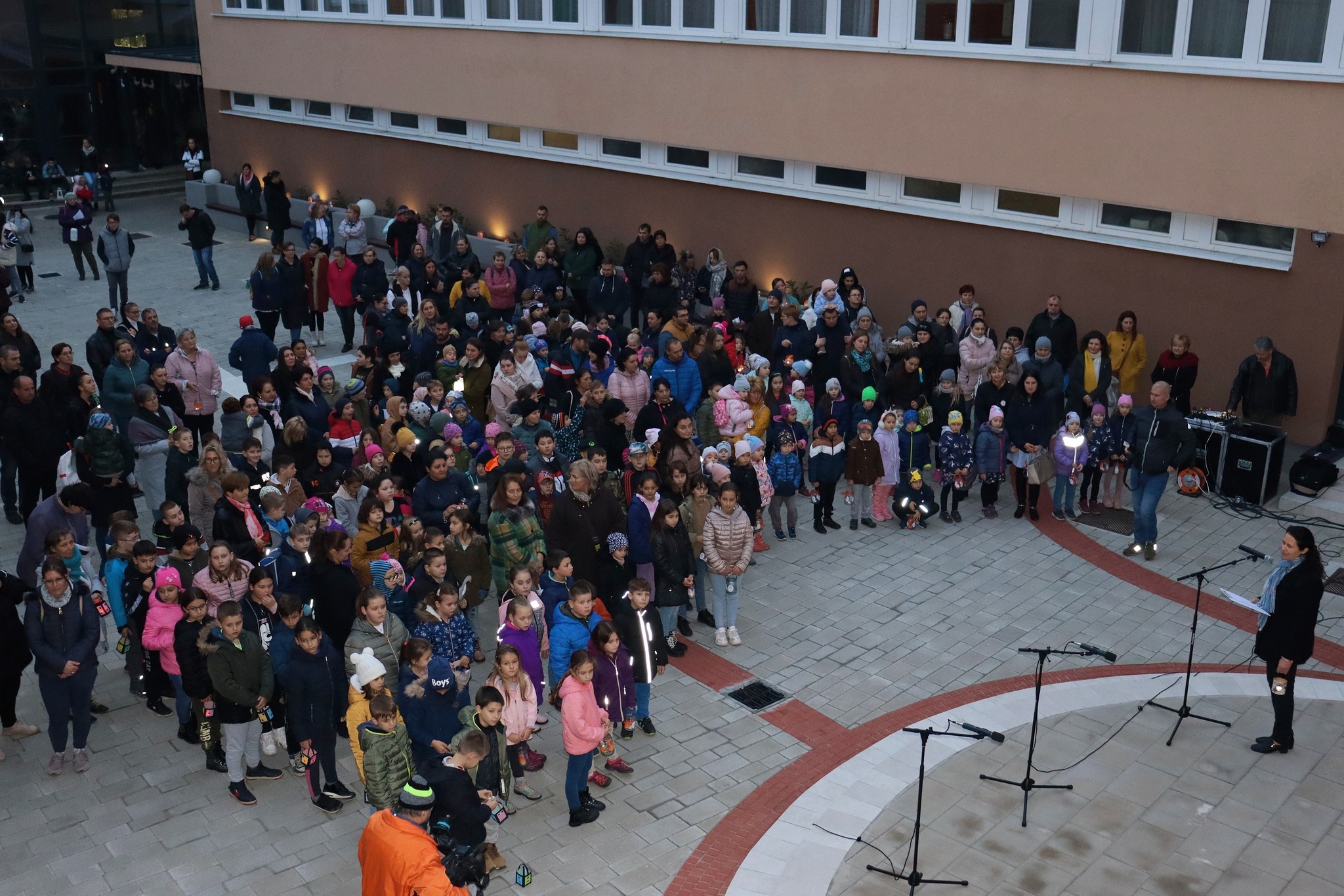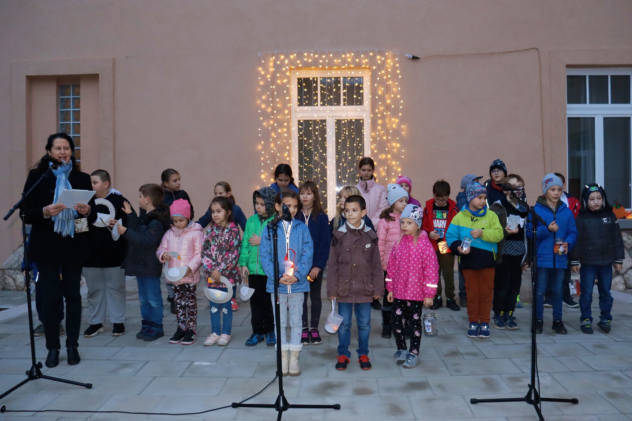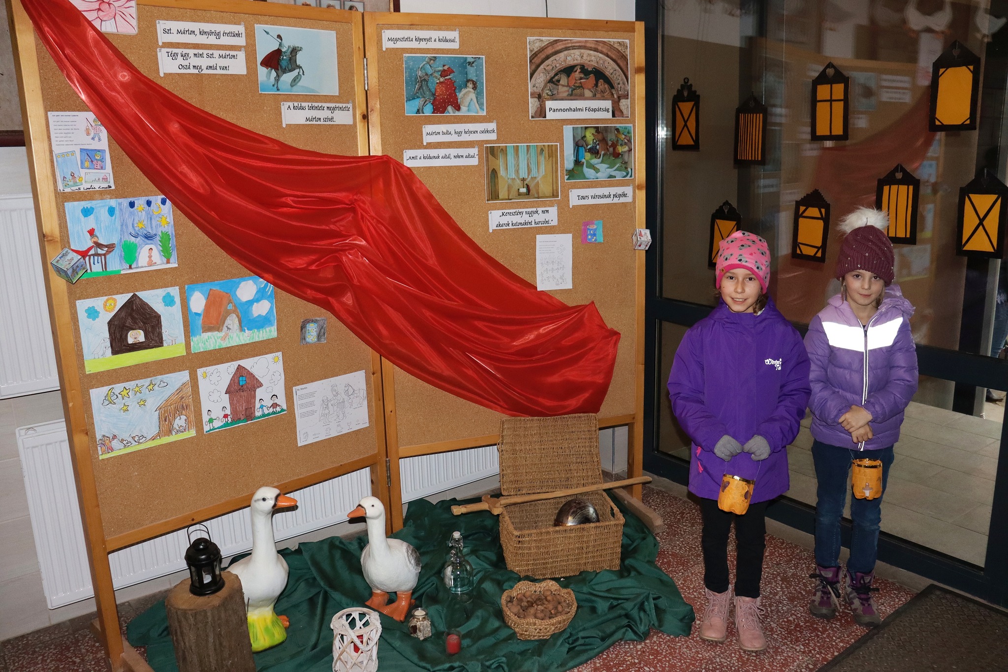 Az ünnepnap előestéjén lámpásokkal a kezükben gyülekeztek óvodásaink és iskolánk tanulói, hogy részt vegyenek a szokásos Márton-napi felvonuláson. A műsor első része a szépen felújított kisudvarunk színpadán zajlott, majd átvonultunk a templomba egy rövid áhítatra. A program nagyon színes volt, hisz hallhattunk trombitaszólót, vidám libás verseket magyarul, Márton-napi dalokat németül. A templomban diaképek segítségével jelenítettük meg Szent Márton legendáját. A nyolcadikosok könyörgéseket olvastak németül, majd magyarul. A legnagyobb meglepetést azonban Attila atya kosara váltotta ki, melyben egy élő liba üldögélt békésen. Hozzánk intézett gondolataiban Szent Márton önzetlenségét, irgalmasságát állította elénk példának. Az áhítat gitárral kísért közös énekléssel fejeződött be.