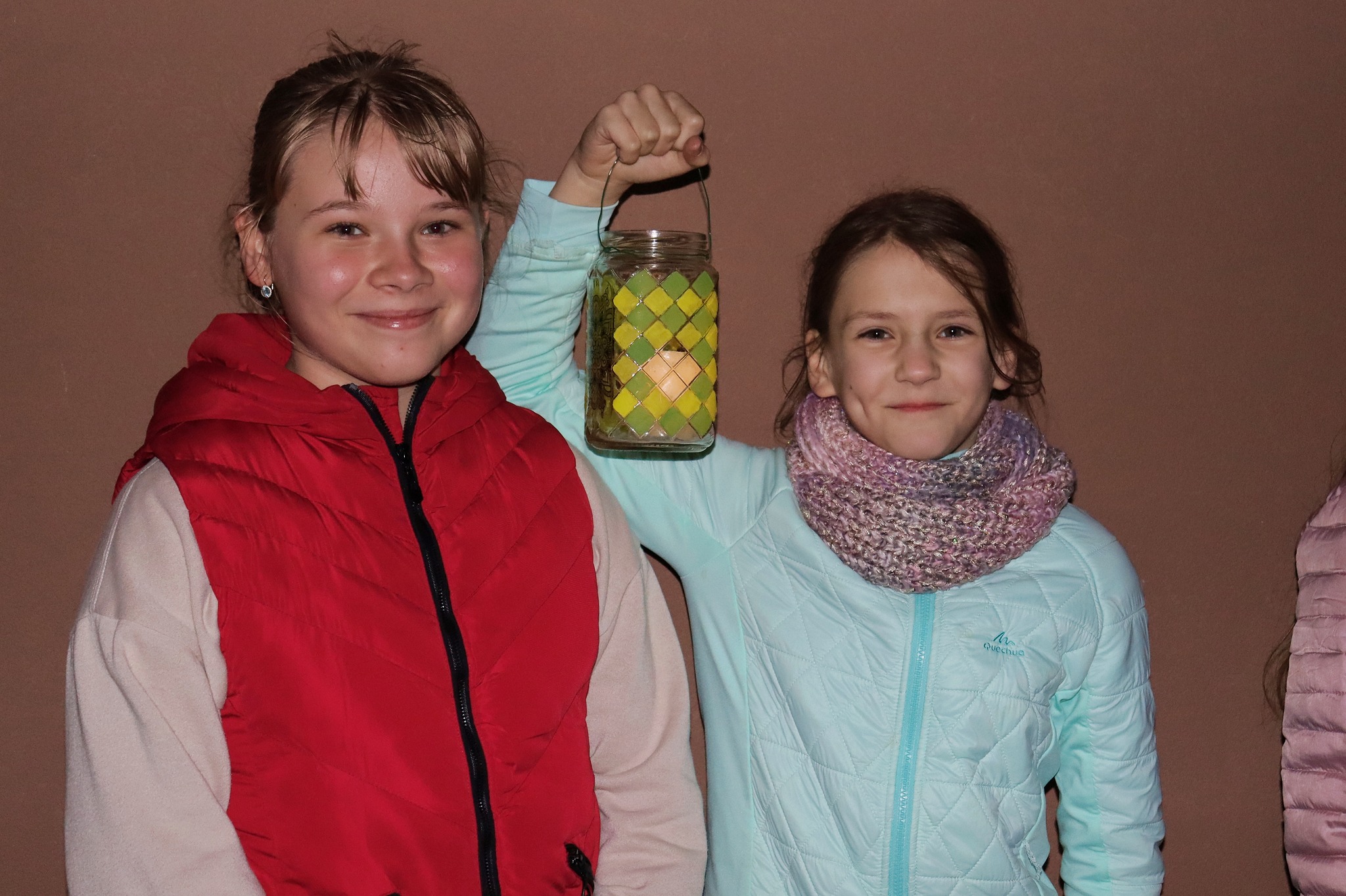 A templomból már sötétben, ragyogóan fénylő lámpásainkkal vonultunk vissza az iskolába, ahol terített asztallal vártak bennünket. Vidám muzsikaszó mellett ehettük a zsíros kenyeret,