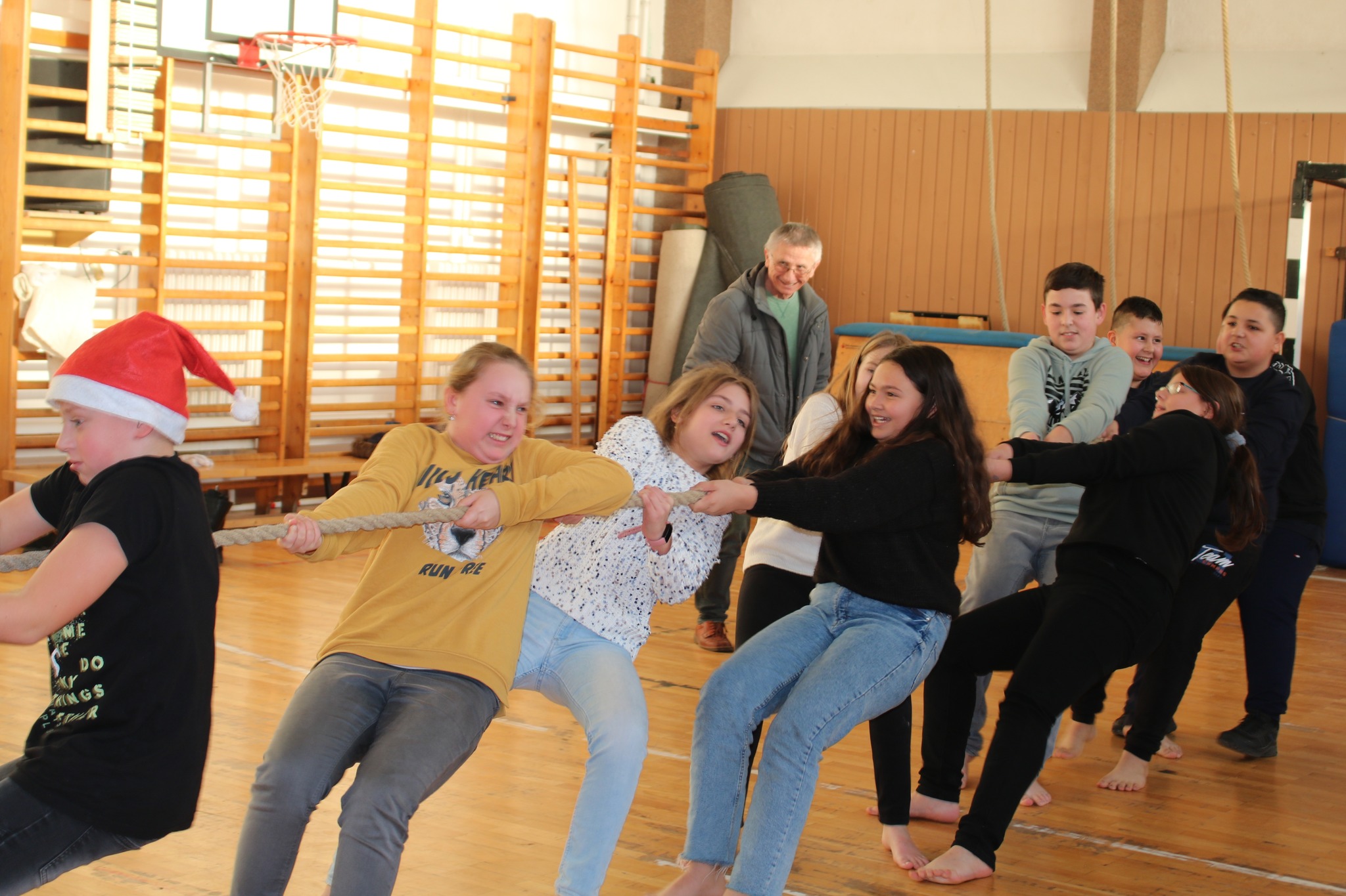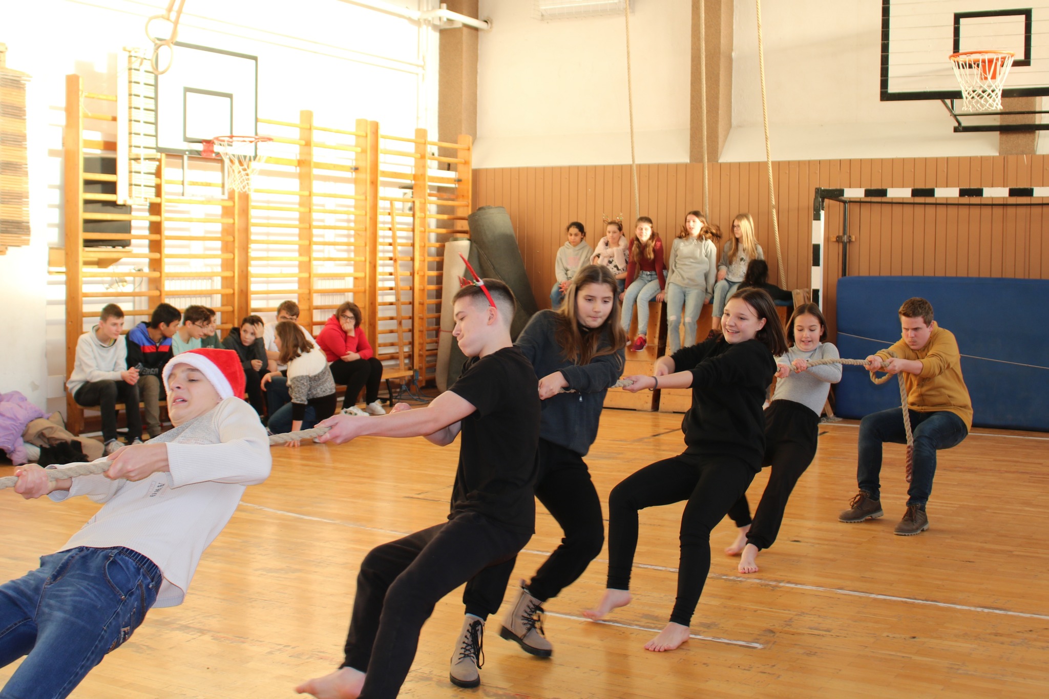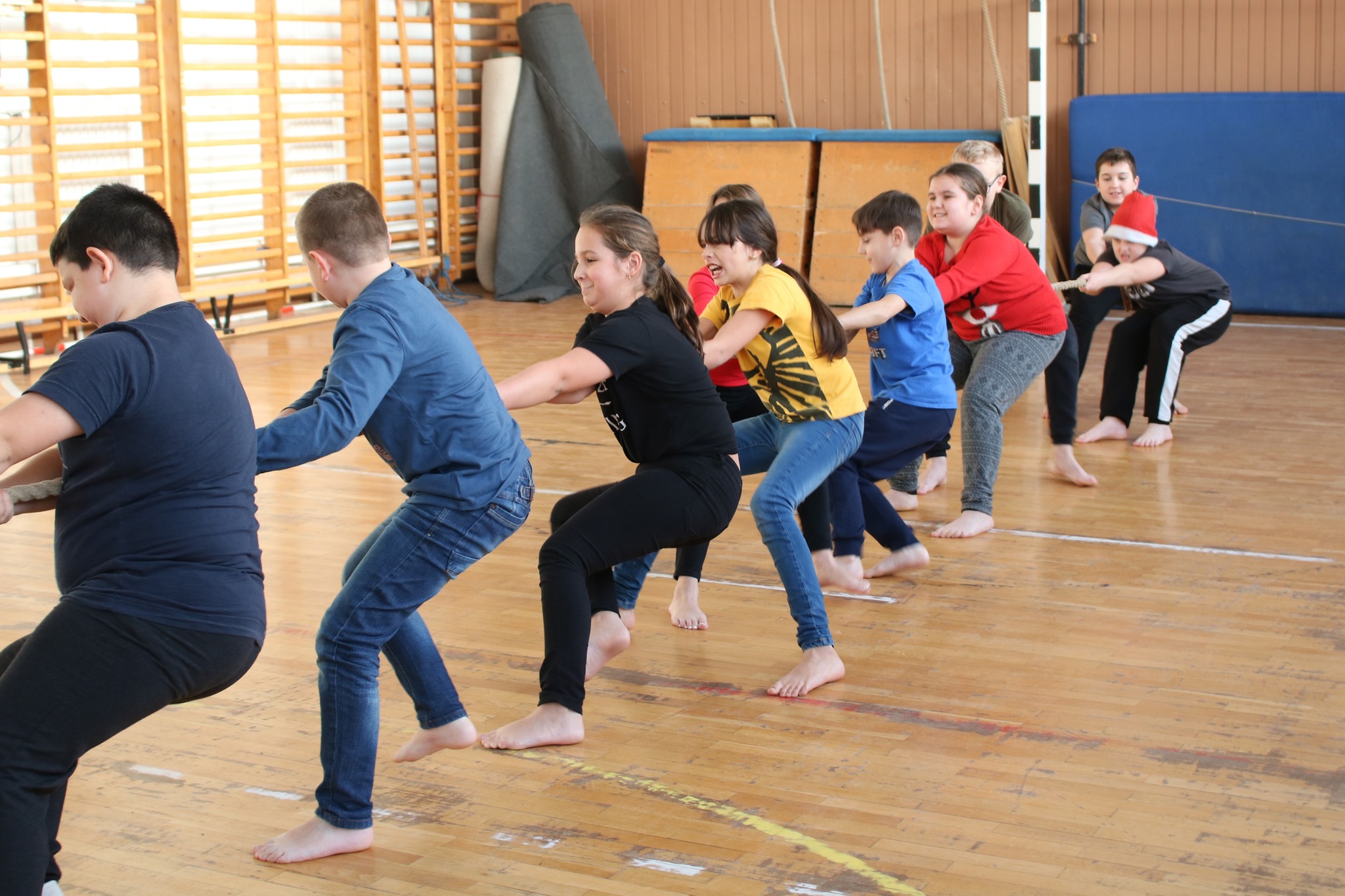 Idei évben sem maradhatott el, a Mikulás napjához kötődő, évfolyamszinten megrendezésre kerülő kötélhúzó versenyünk. Izgalmas csatáknak lehettek fül-, és szemtanúi azok, akik ezen a délutánon versenyzőként, vagy szurkolóként részt vehetett rajta. Gratulálunk az osztályok teljesítményéért, ügyes helytállásukért!
