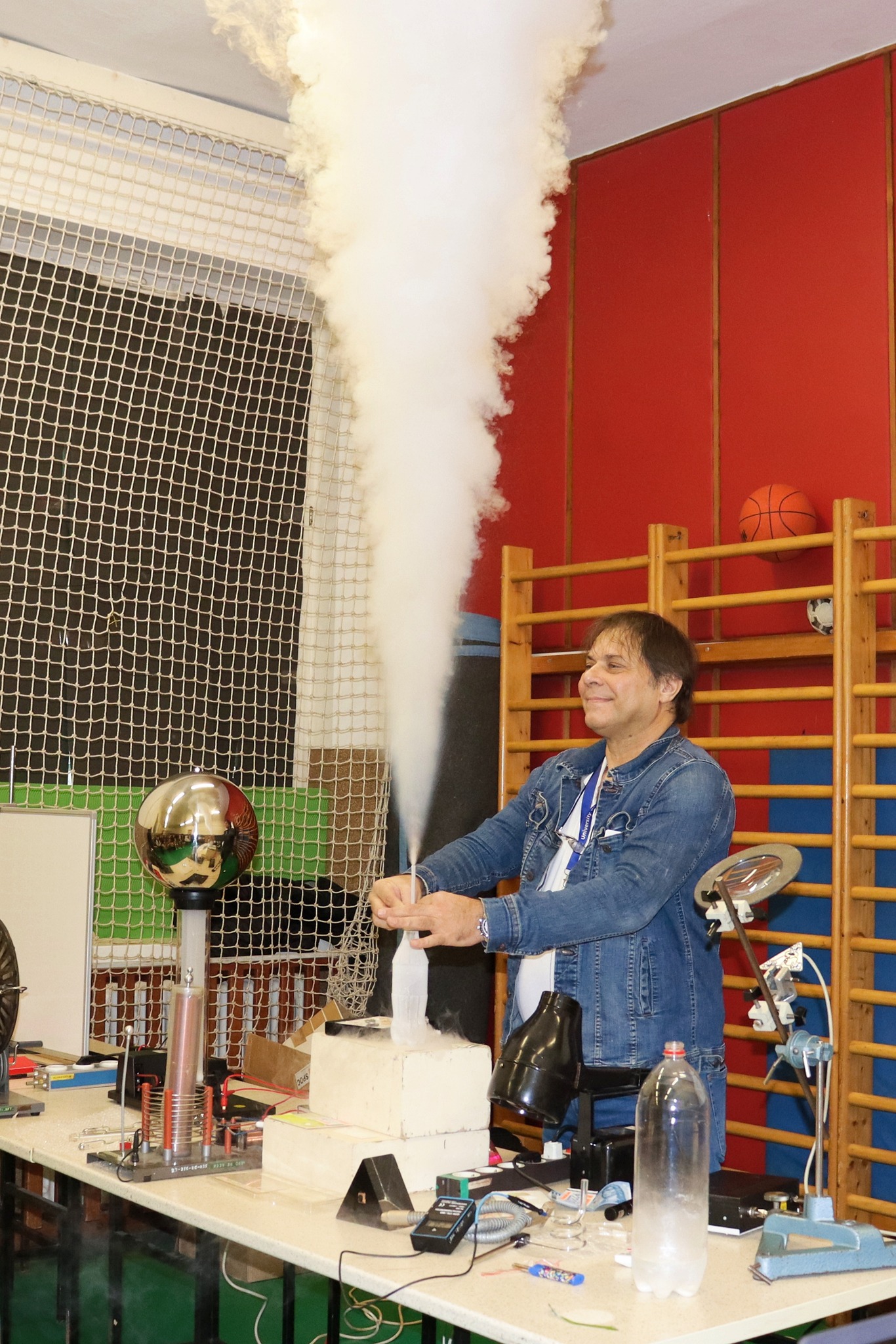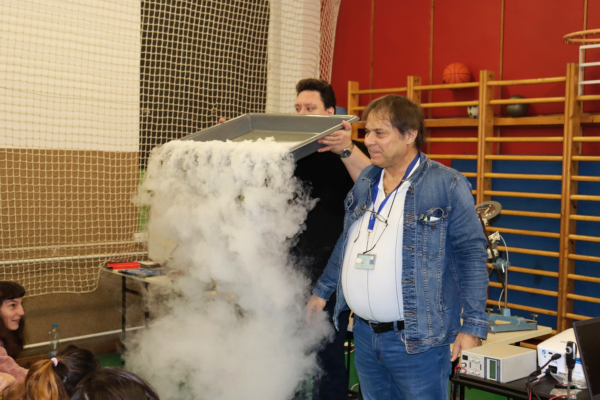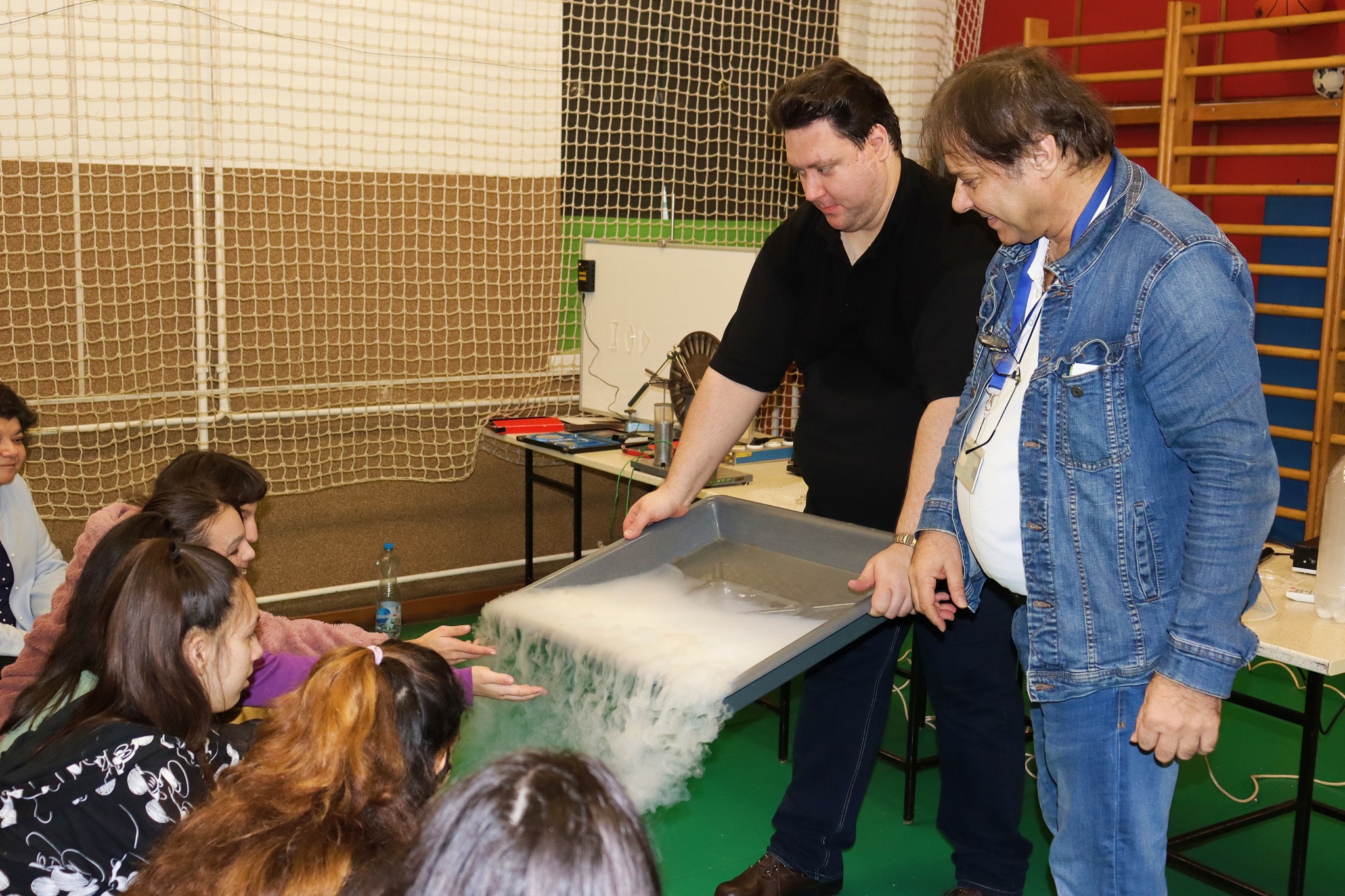 Ignácz Ferenc a szegedi egyetem mesteroktatója tartott fizika tantárgy témaköreiből bemutatót tanulóinknak és a meghívott vendéginknek. Fénytanból a látható és az érzékelésünkön kívül eső fényt és annak jellemzőit ismerhettük meg az első részben. Az elektrosztatika is megjelent a bemutatóban. Nagy sikere volt a Tesla transzformátornak is. A látványos kísérletek a száraz jéggel és a folyékony nitrogénnel folytatódtak és bűvölték el a gyerekeket, tanárokat. Ilyen érdekes nálunk a fizika!
