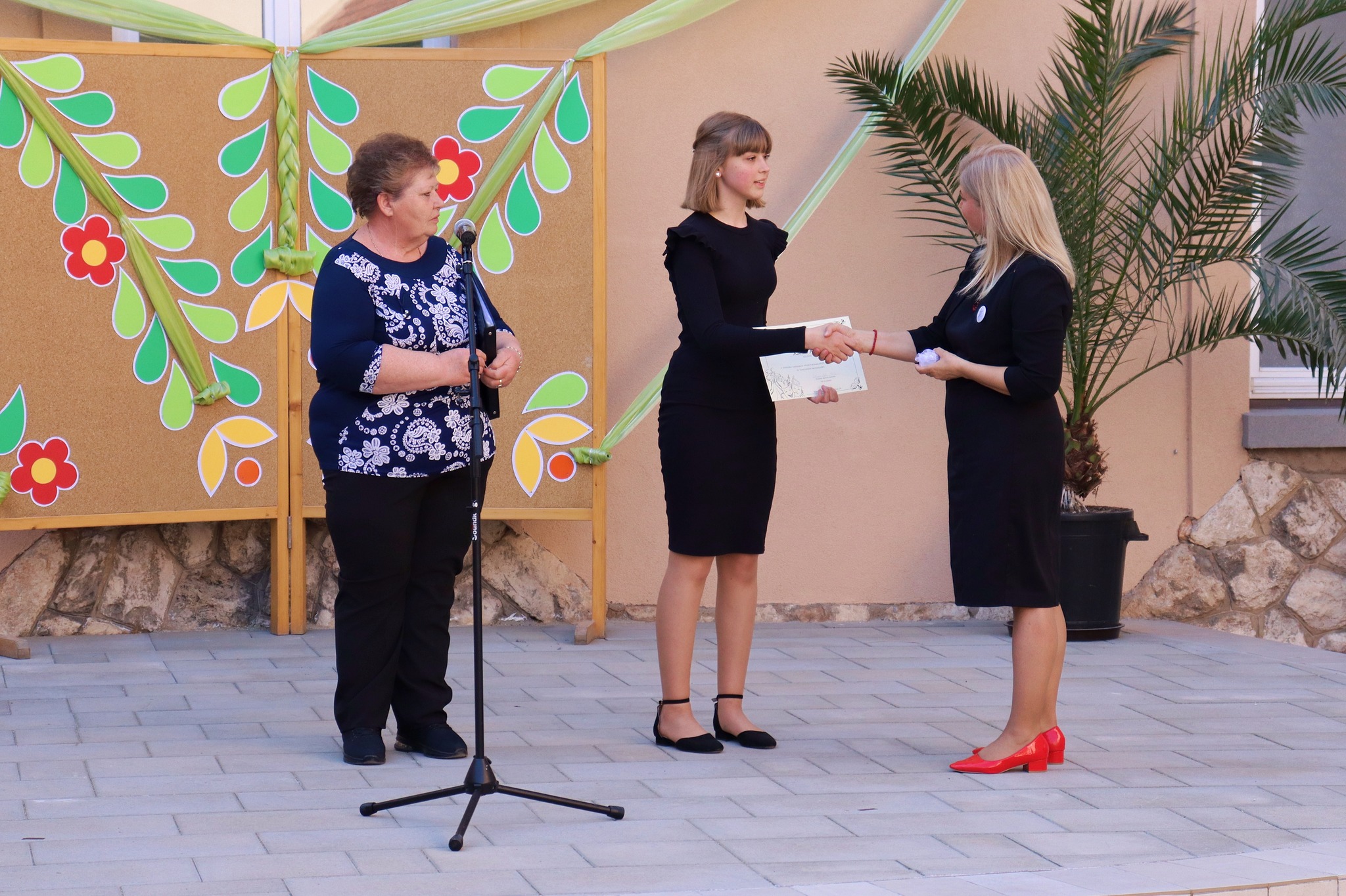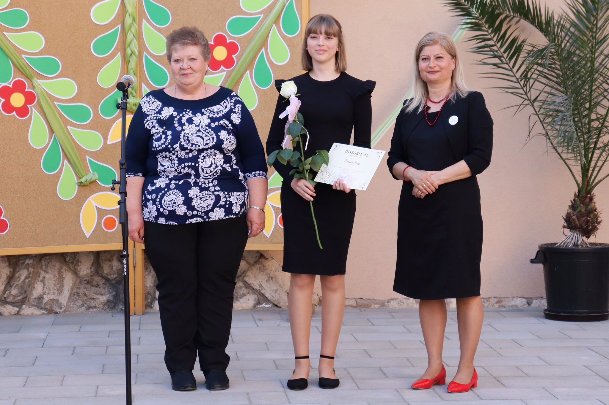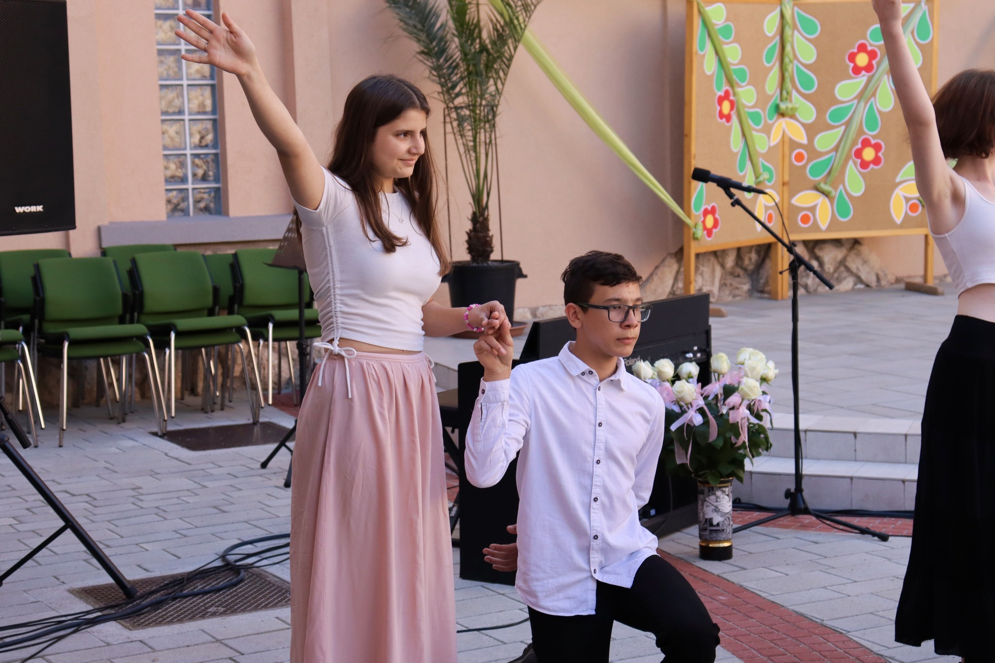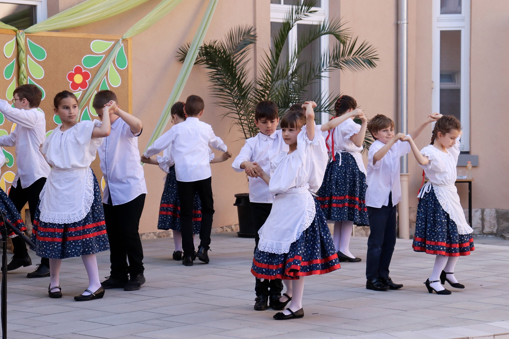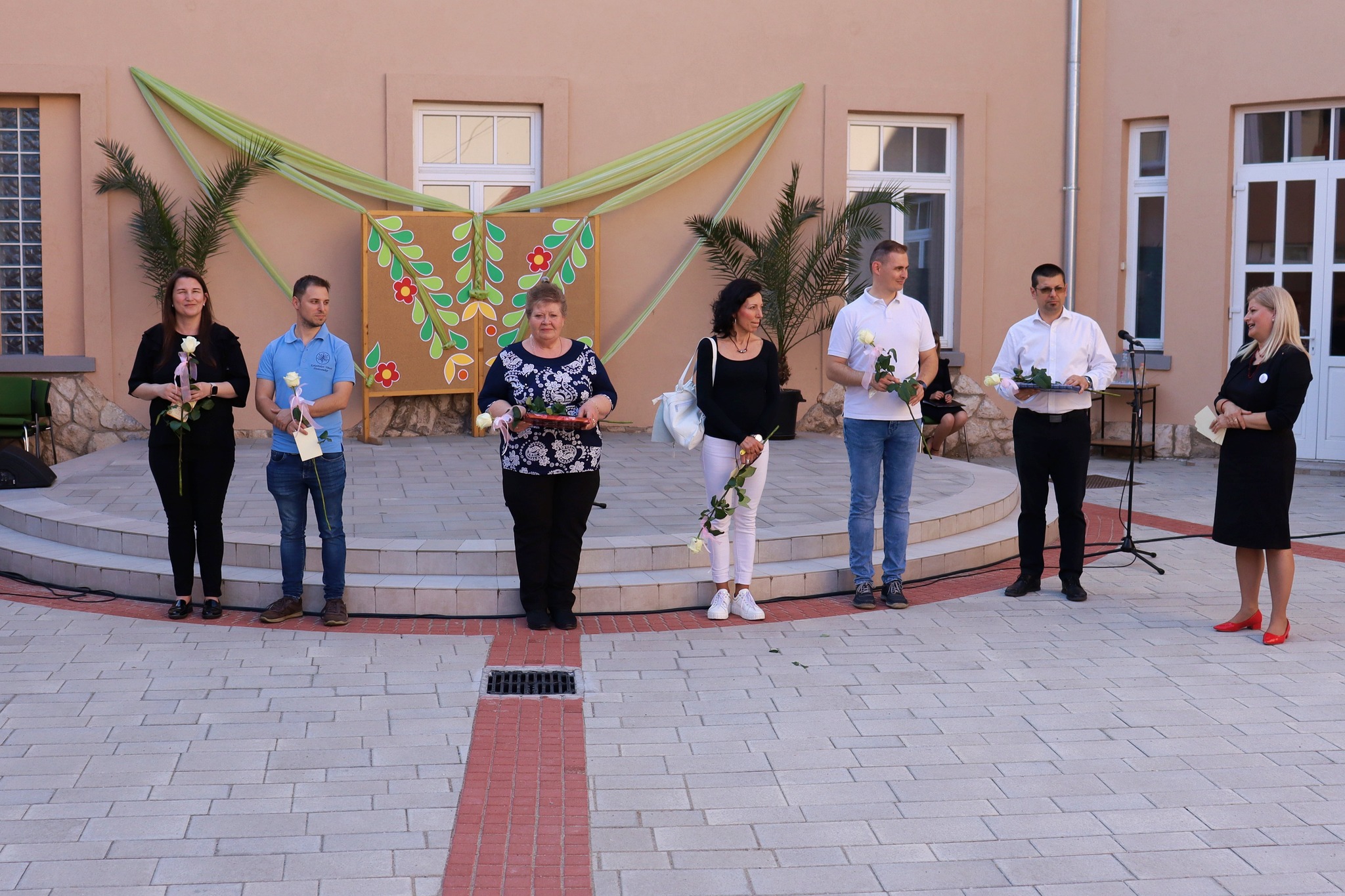 Május 24-én délután új programmal leptük meg az érdeklődőket. A hagyományteremtő Zenélő díszudvar a muzsikával kapcsolatos tehetségeket vonultatta fel iskolánkból. A vidám hangulatú előadáson felléptek a fúvós zenekar tagjai, a néptáncosok, az iskolai gyermekkórus, a kisiskolások és végzősök, továbbá egyéni hangszeresek. Az őket felkészítő pedagógusokat igazgatónő köszöntötte. A Zenélő díszudvar című programunk keretében Dózsáné Mohos Mónika igazgatónő, az általa alapított Szent Ágoston Művészeti díjat adományozta Kovács Kata 7. évfolyamos, kiemelkedően tehetséges diákunknak. Gratulálunk!