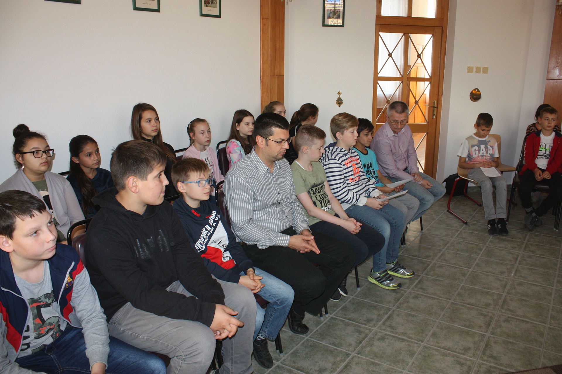 A Szükséget Szenvedő Egyház (Kirche in Not) nemzetközi segélyszervezet immár tizenkét éve minden évben, október 18-án arra hívja a gyermekeket az egész világon, hogy közösen imádkozzák a rózsafüzért a világ békéjéért. Az 5. évfolyamos katolikus diákokkal csatlakoztunk a felhíváshoz, és fohászkodtunk Szűz Máriához, Béke Királynőjéhez. Az imádság elején megáldásra került a gyermekek által készített szentolvasó.