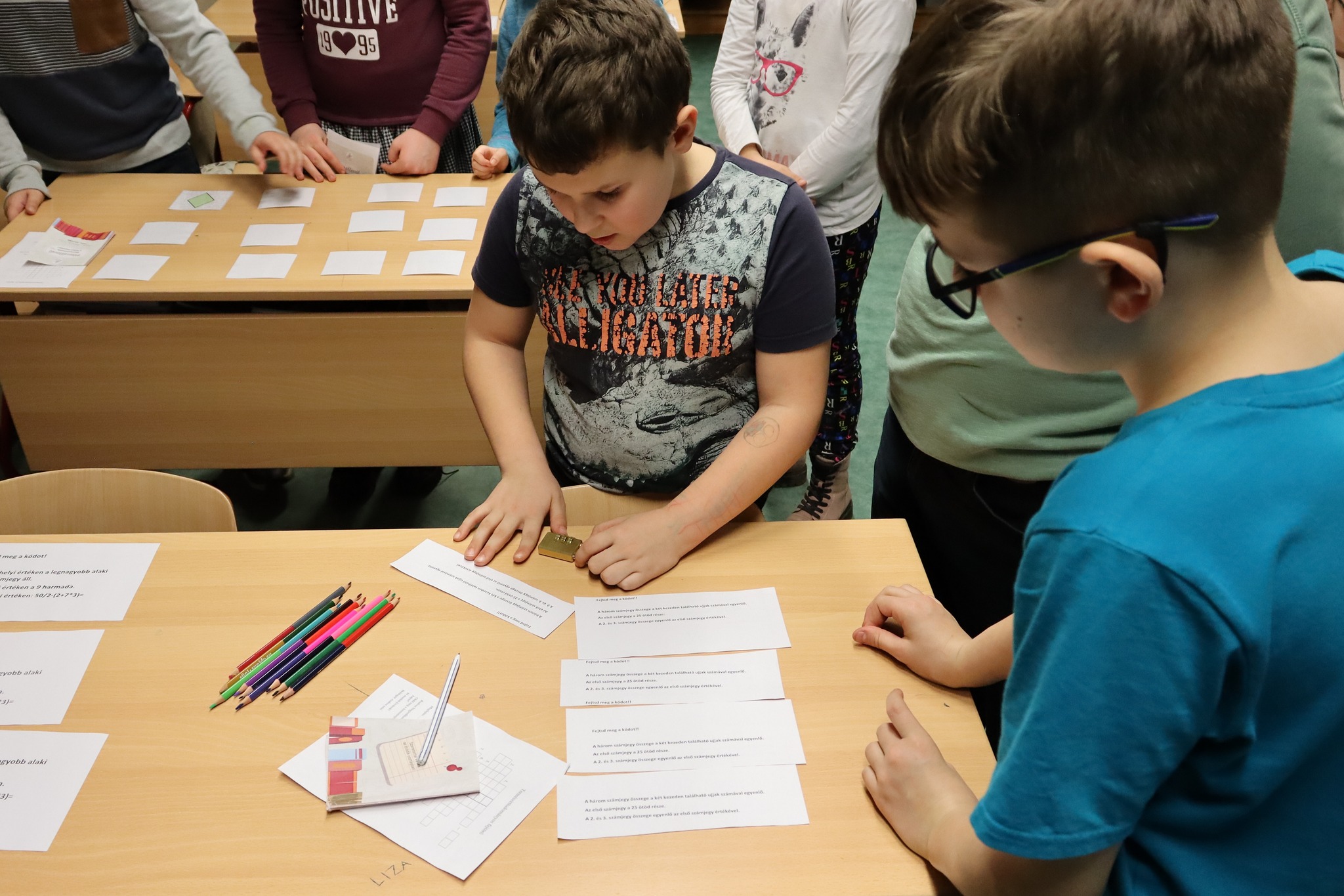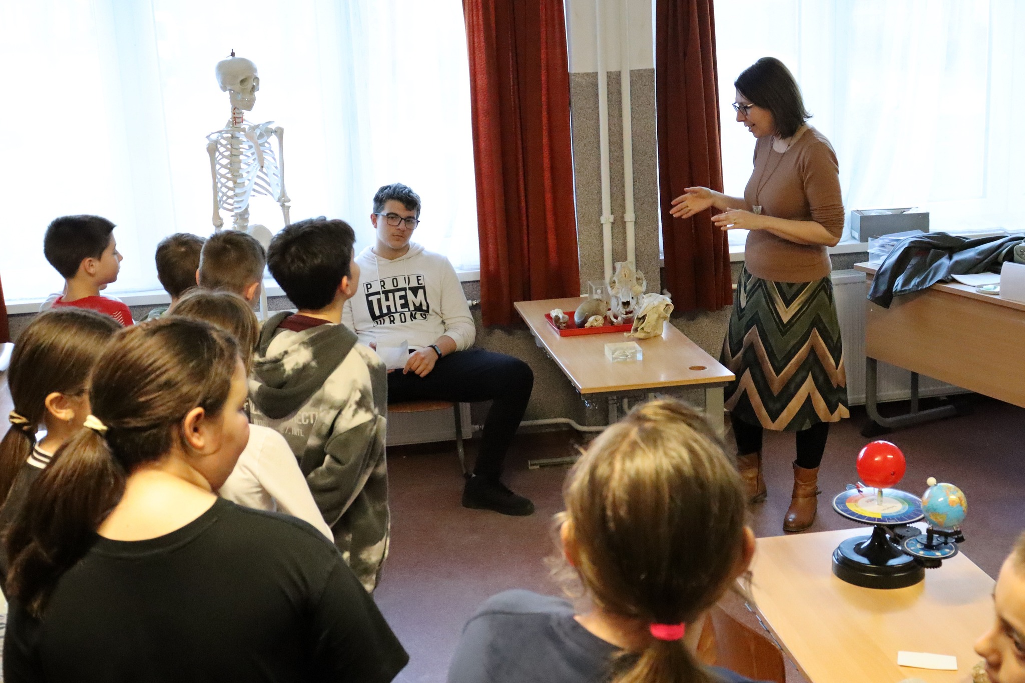 A felső tagozaton tanító tanárok szerveztek bemutatkozó délutánt az ötödik osztályba készülő diákok számára. A szaktantermekbe, tornaterembe szervezett állomásokon várták a feladatok a kisdiákokat, ahol bepillantást nyerhettek az új, számukra még nem ismert tantárgyak látványos fejezeteibe. A szülőket is meghívtuk erre az alkalomra, hogy ők is megismerhessék iskolánk tanárait, és játékosan ismételjék a rég tanult dolgokat.