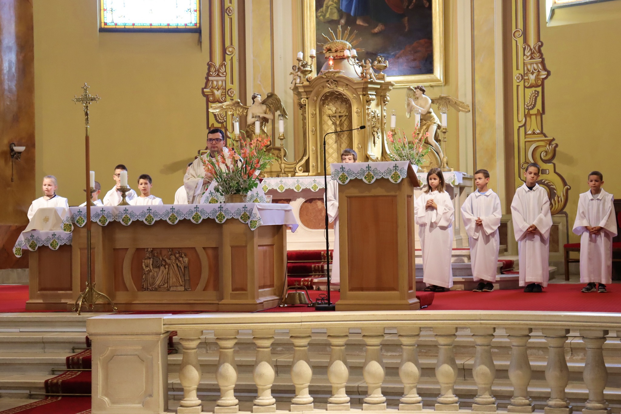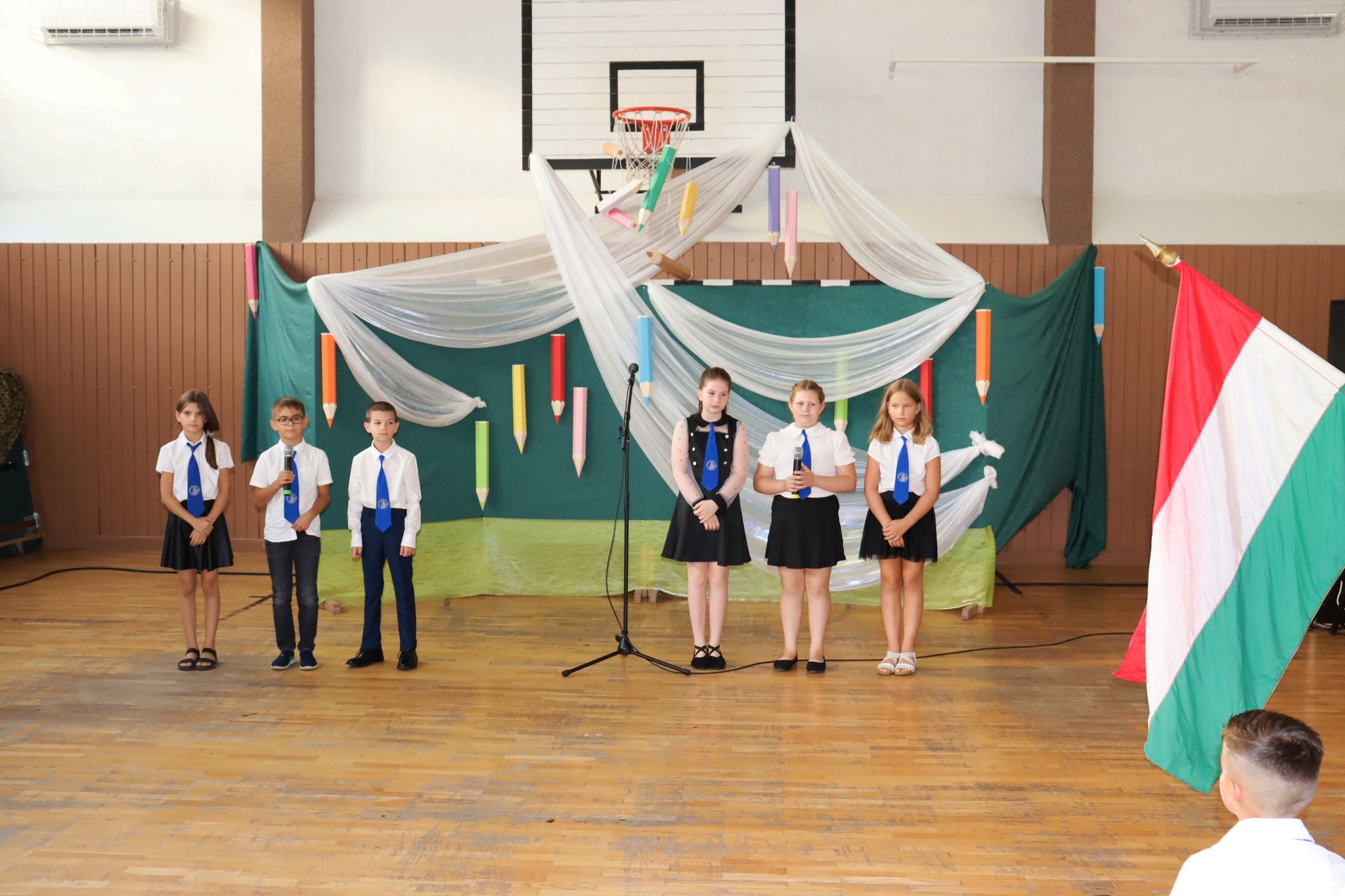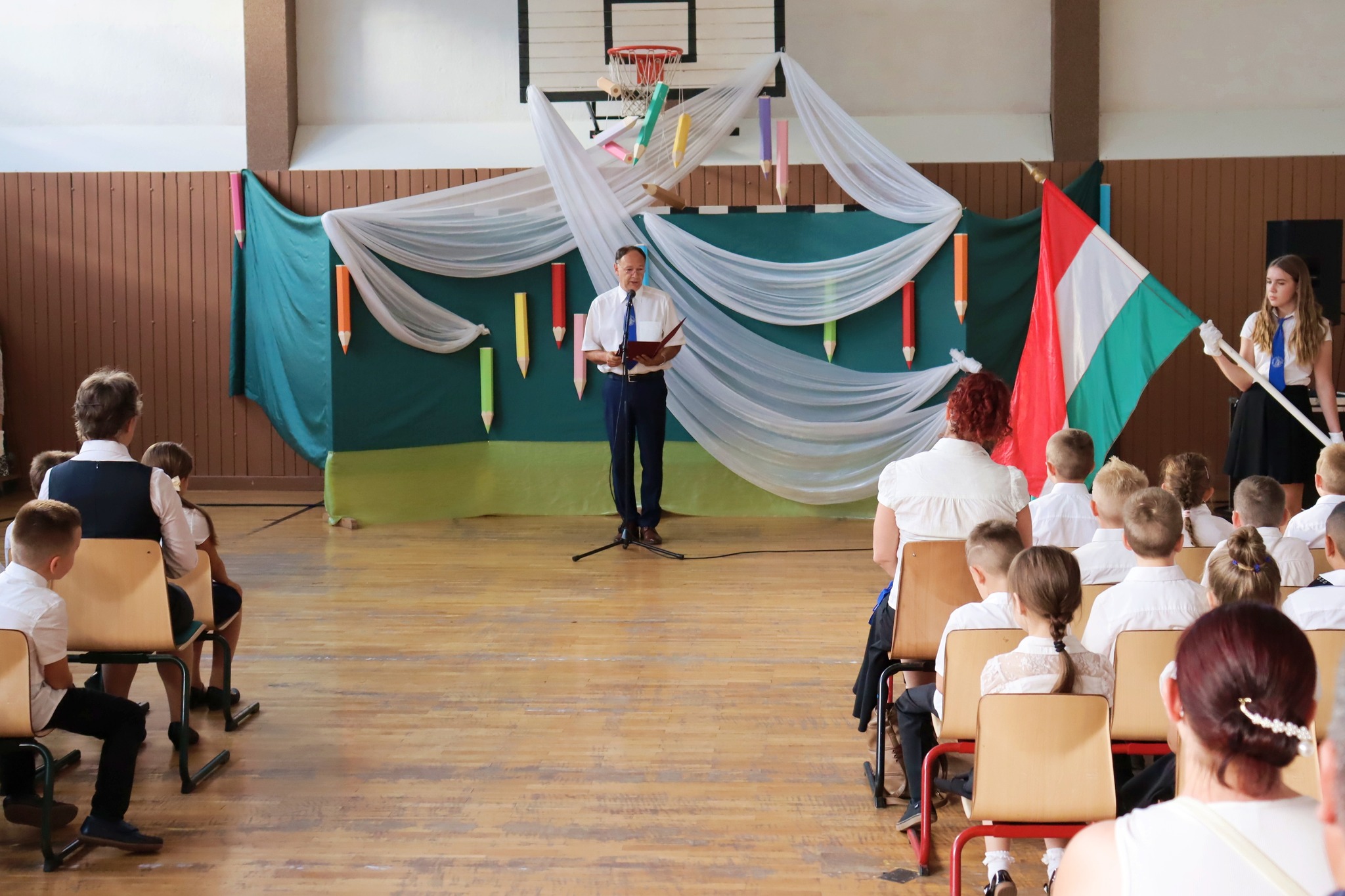 Első osztályosainkat ünnepélyesen fogadtuk intézményi közösségünkbe. Főigazgató úr üdvözlő szavai és Kisjuhász Tibor iskolalelkész atya köszöntője mellett 4.b osztályos tanulóink musical részletekkel kedveskedtek nekik. Az intézménytől és az Alsóvárosi Diáktársaságtól füzetet és ceruzát kaptak. Az ajándékokat nyolcadikosaink adták a kezükbe, míg az összetartozásunkat láthatóvá is tevő nyakkendőt tanítóik helyezték a nyakukba. A 2-8. évfolyam számára szentmisével és főigazgató úr megszívlelendő szavaival indult a tanév. A nyári szünetben hozzánk érkezett tanulók osztályfőnökeiktől vehették át az ünnepségen a közösségünkbe fogadást jelképező iskolai nyakkendőjüket.