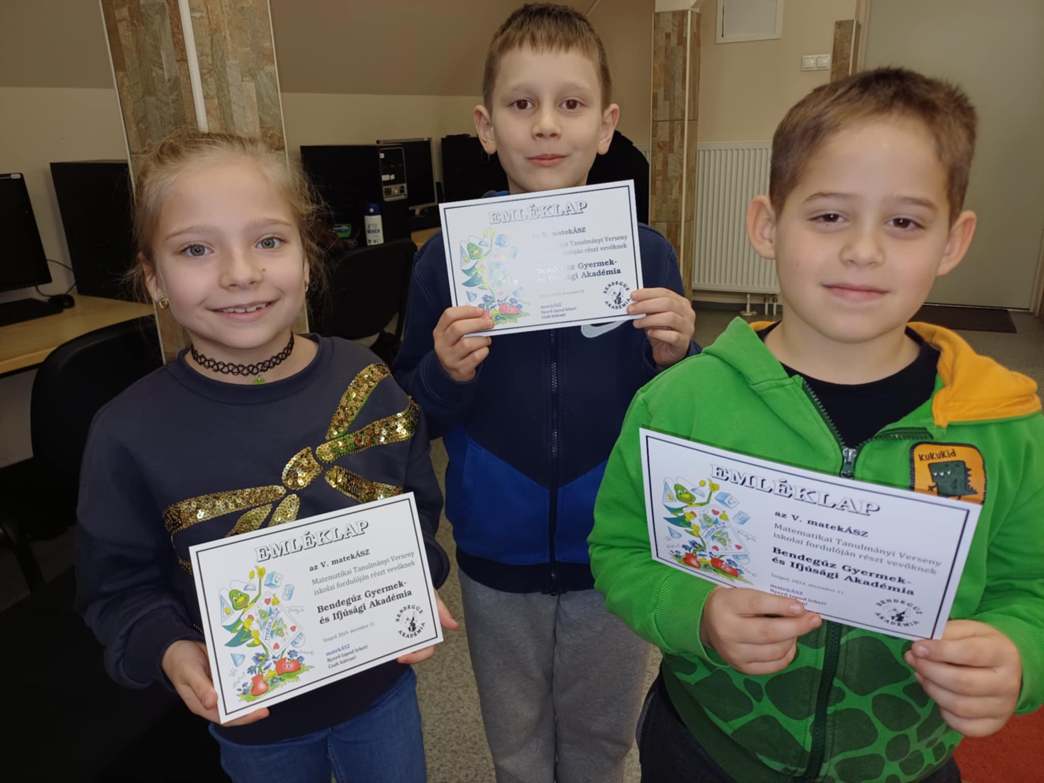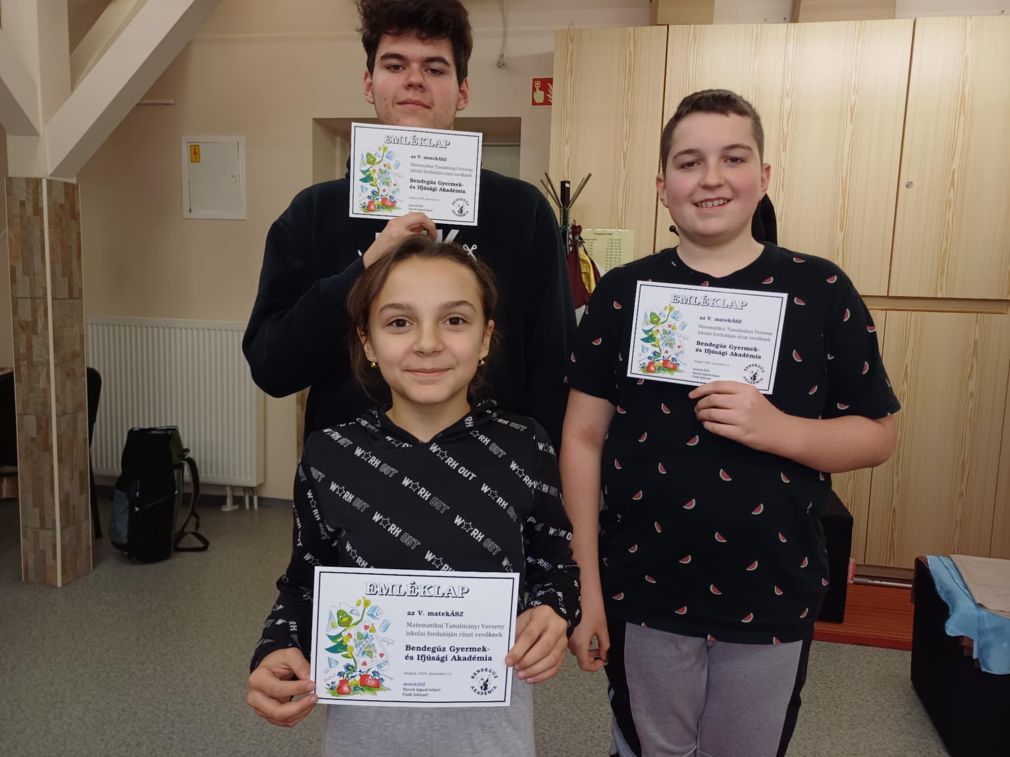 2024. december 11-én a MatekÁsz verseny 1. fordulójában köszönhettük lelkes diákjainkat! A feleletválasztós verseny eredménye és a továbbjutók névsora januárban várható. Sok sikert kívánunk! Felkészítő pedagógus: Szűcs Zsuzsa
