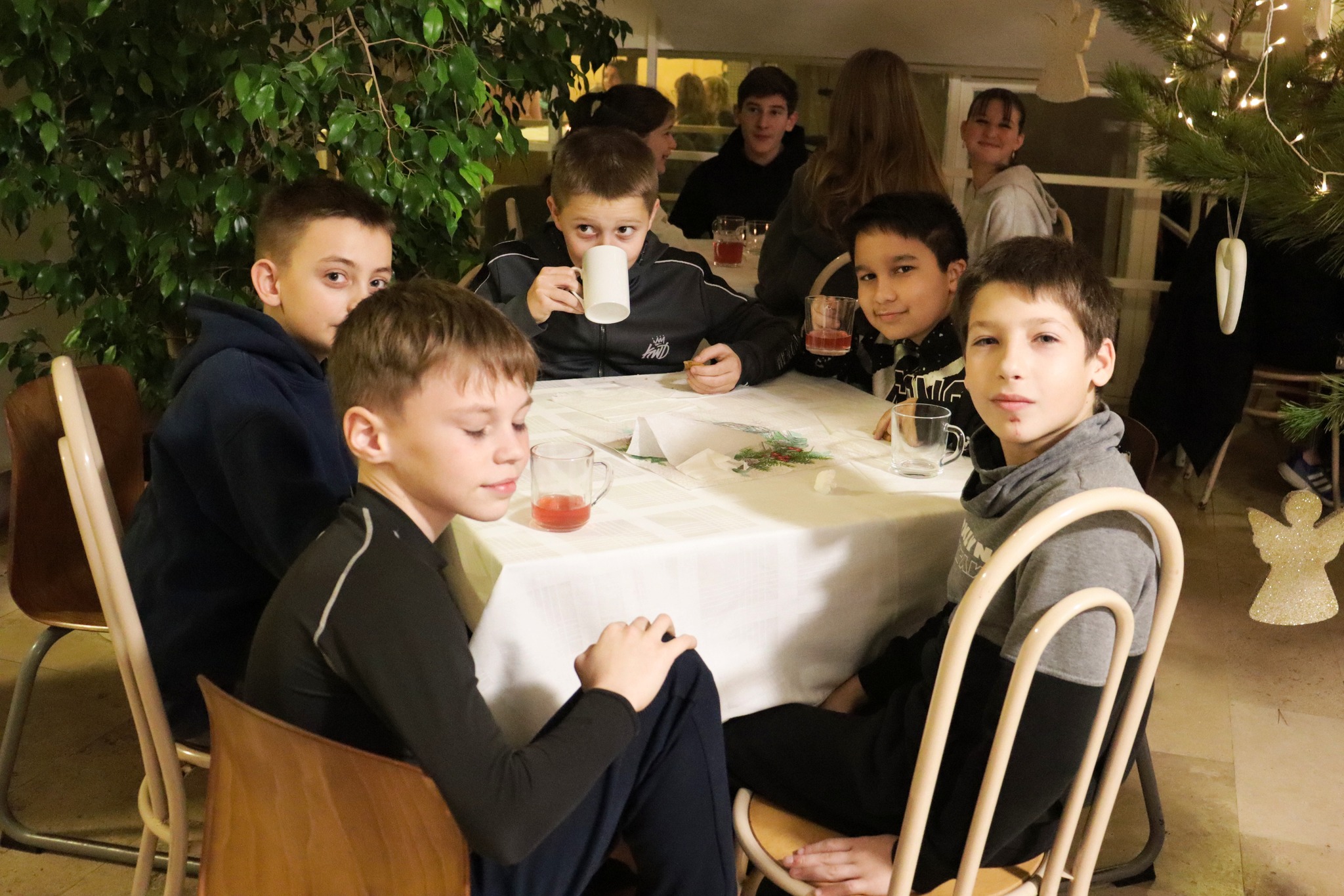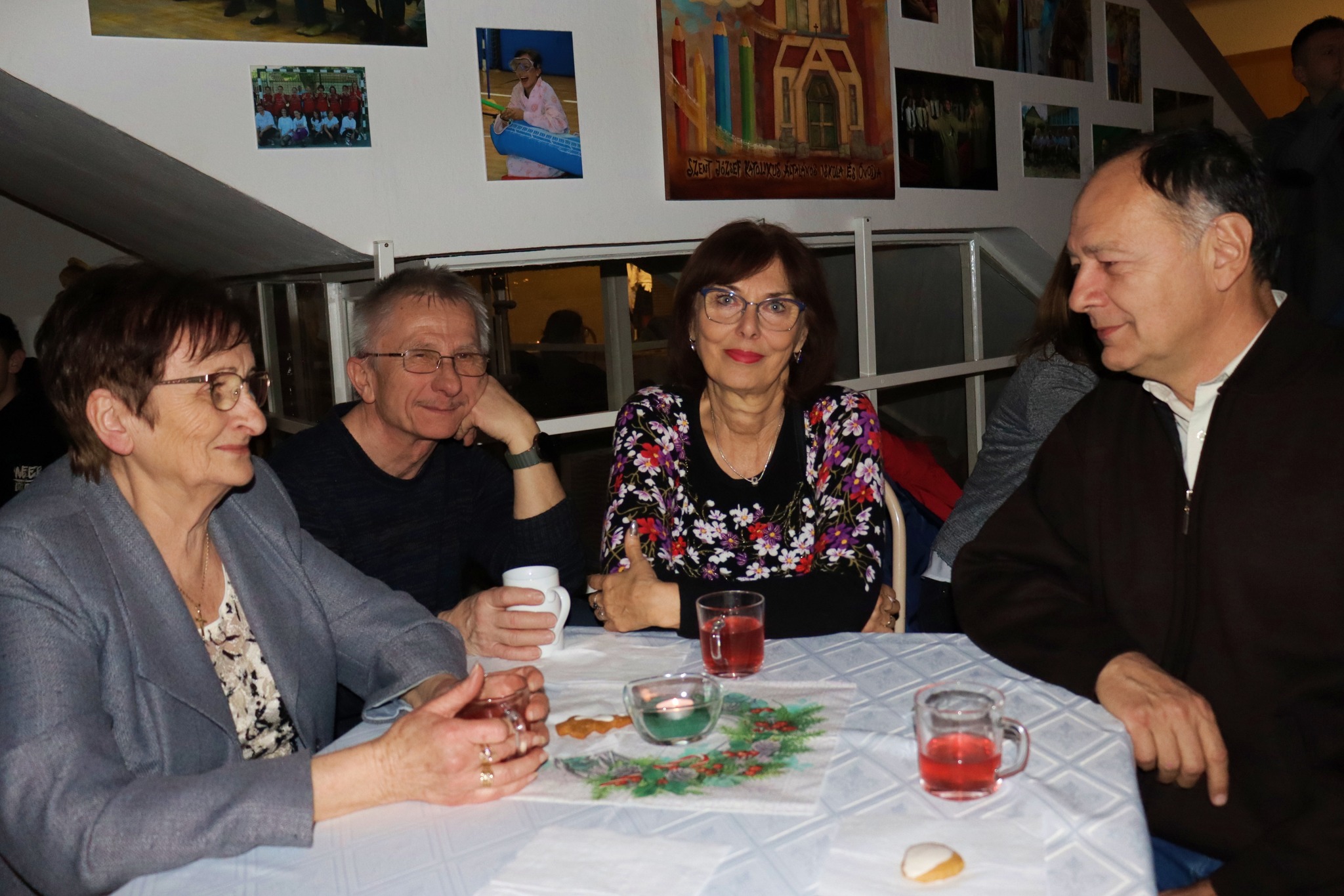 Hagyományainknak megfelelően december 11-én megrendeztük adventi teaházunkat. A délutántól kora estig tartó rendezvényen mézeskaláccsal, sós süteménnyel, teával láttuk vendégül a szülőket és tanulóinkat. Az eseményen nyolcadikos lányaink szolgáltak fel, s a nyolcadikos fiúk várták az ajtóban a vendégeket. A különlegesen finom mézeskalácsot az idén is a végzős lányok és a pedagógusok sütötték. A feldíszített karácsonyfa mellett és az adventi koszorú alatt, diákjaink hangszeres zenéje mellett ismét vidám délutánt töltöttünk el.