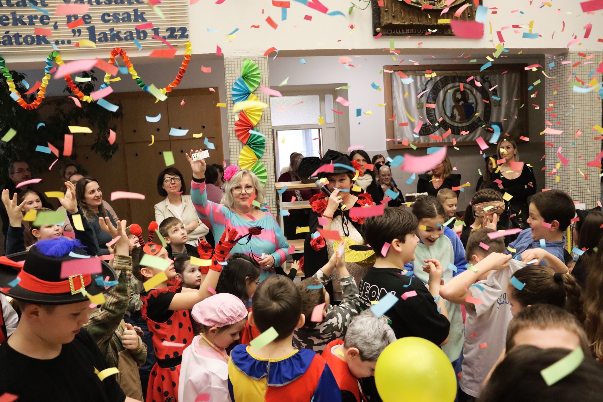 Az idei tanévben is nagyszerű farsangi mulatságon vehettek részt az alsó tagozatos gyerekek iskolánkban. Fergeteges osztálytáncok színesítették a délutánt, amelyek után az egyéni jelmezesek is bemutatkozhattak. A közös tánc, a zsákbamacska és tombola meglepetései, valamint a sok finomság tette teljessé a programot.