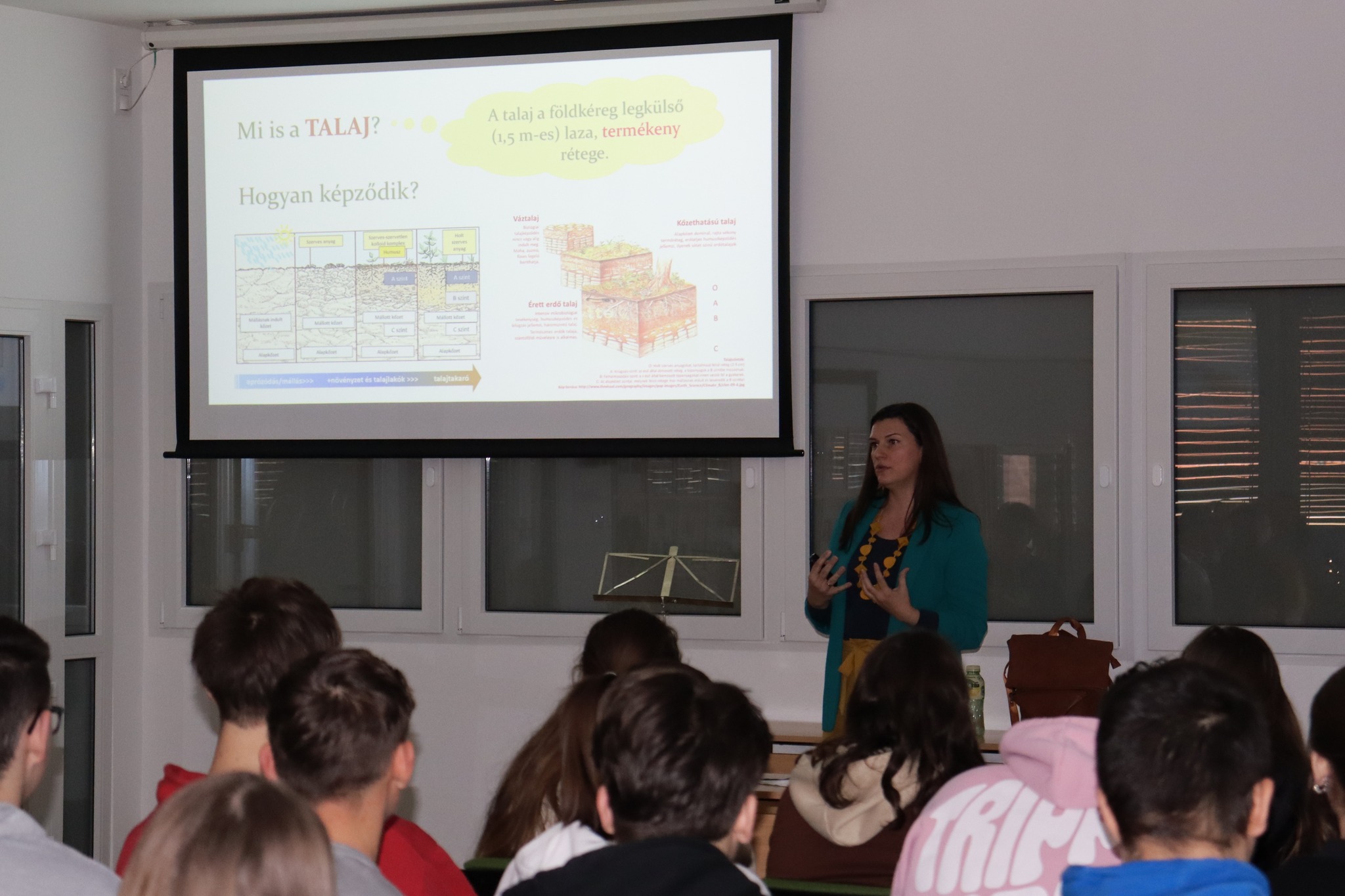 A talaj fontosságáról a kisebbek Kecskeméten, a Természet Házában, Giliszta professzor interaktív foglalkozásán tanulhattak, míg a nagyobbak dr. Balog Kitti, a Talajtani Intézet kutatójának iskolai előadásán mélyíthették el ismereteiket.