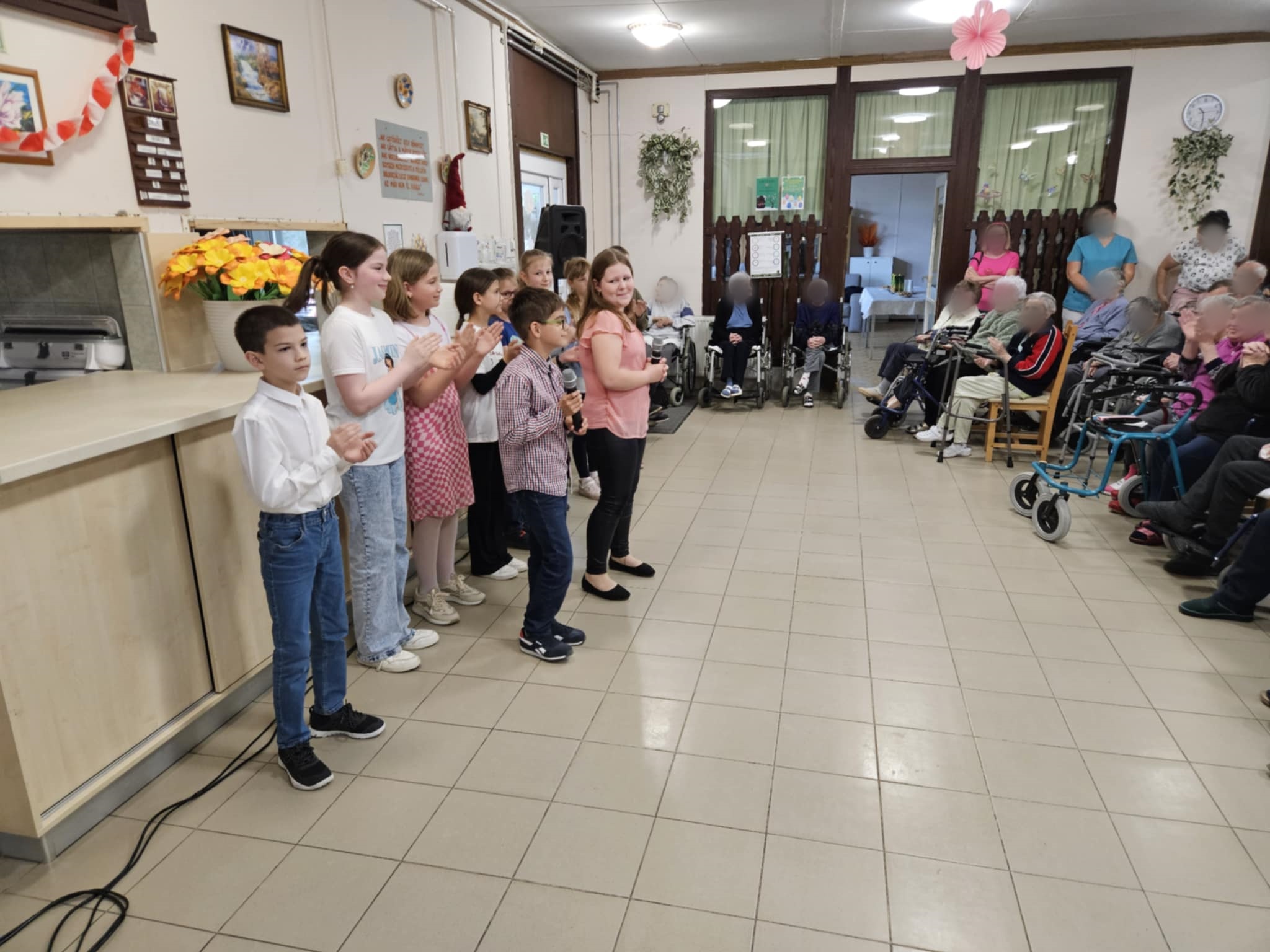 Iskolánk 4.b osztályos tanulói ma látogatást tettek a kiskunhalasi Nyúl Utcai Idősek Otthonában. 10 órakor az otthon minden lakója már izgatottan várta diákjaink előadását. A zenei palettán musicalek és operettek egyaránt helyet kaptak, és minden zeneszámot nagy tapssal jutalmazott a közönség. Öröm volt látni és hallani, ahogyan az operettek szövegét velünk együtt énekelték. Kérték, hogy máskor is látogassunk el hozzájuk — mindig szeretettel várnak minket.
