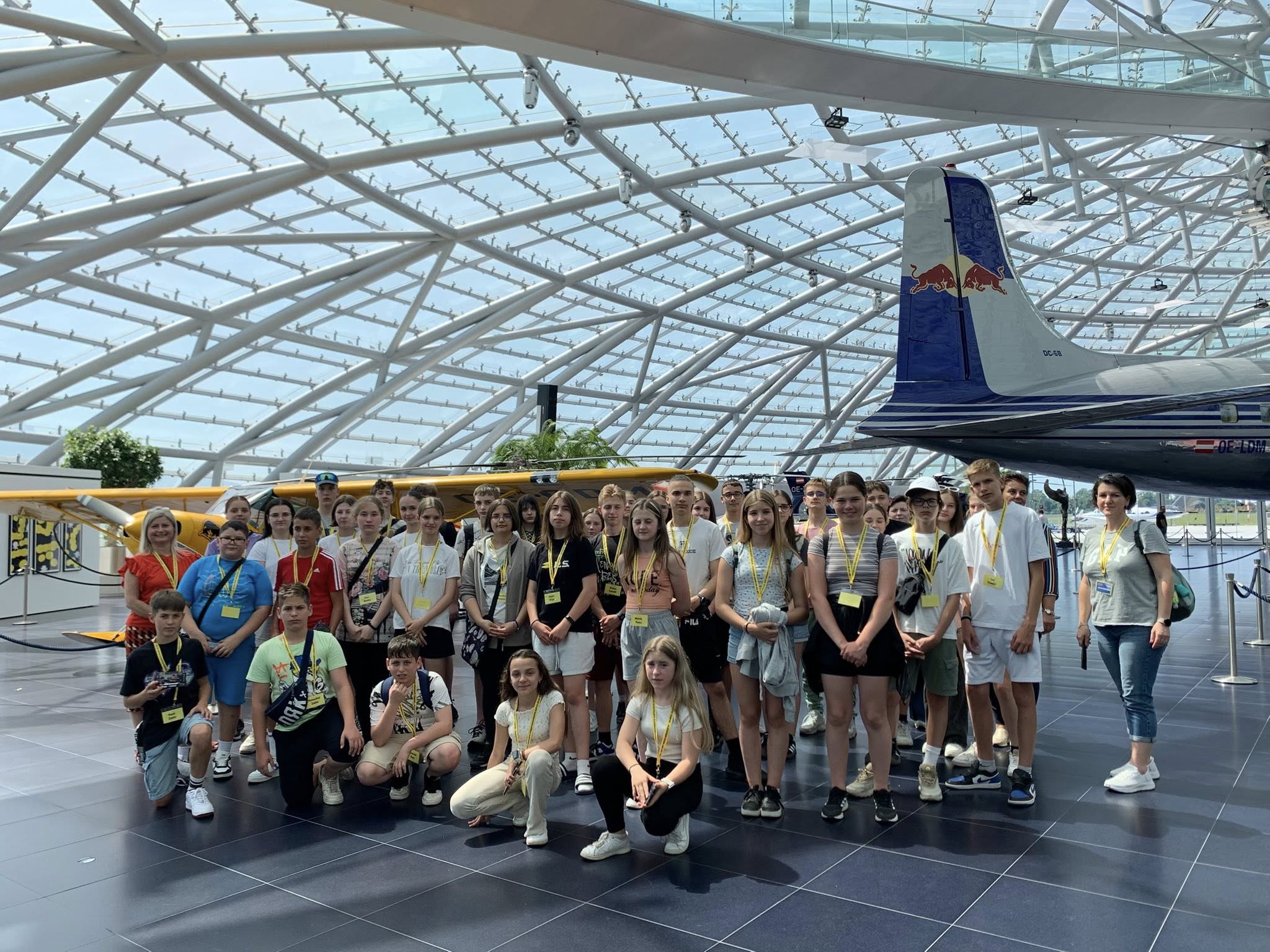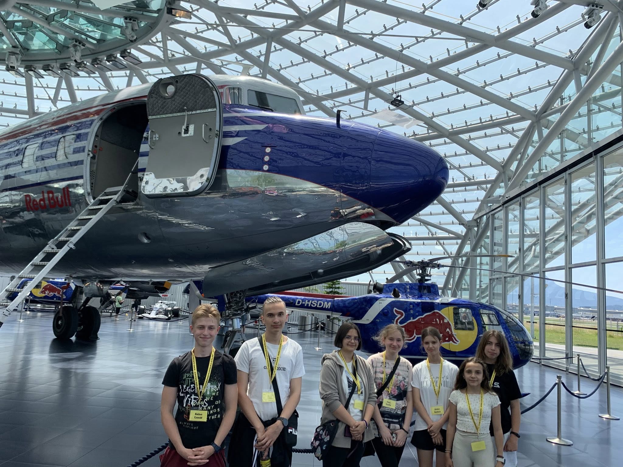 Az odaúton rövid megállót tettek a Red Bull Hangar-7-ben, ahol repülőgépek és versenyautók találkoznak a modern építészettel.
