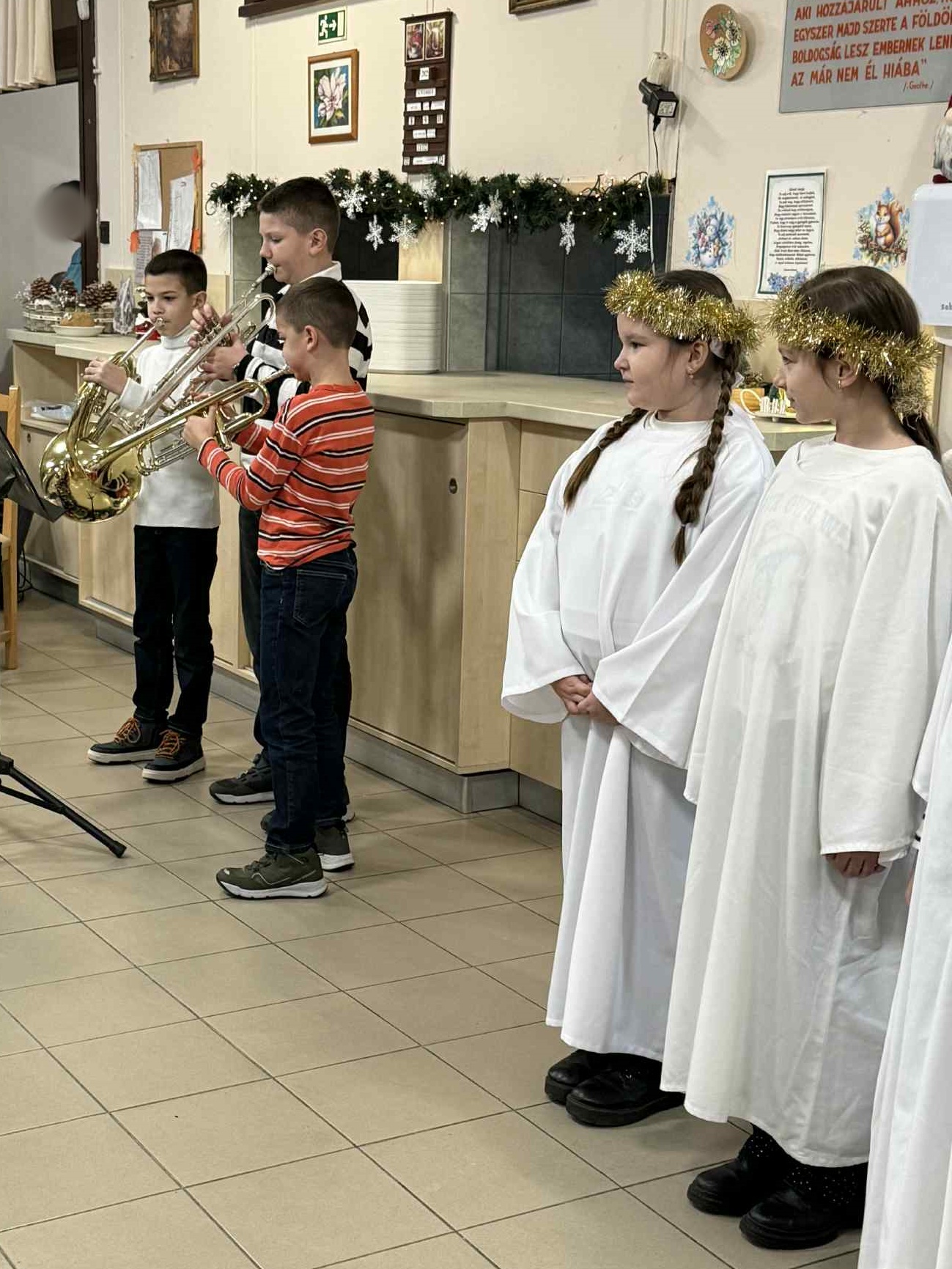 Délelőtt iskolánk 3. évfolyamos tanulói a Nyúl utcai idősek otthonában tettek látogatást. Pásztorjátékukkal és a Katolikus Főplébánia Karitasz csoportjának ajándékával kívántak áldott ünnepet a gondozottaknak és az intézmény dolgozóinak.