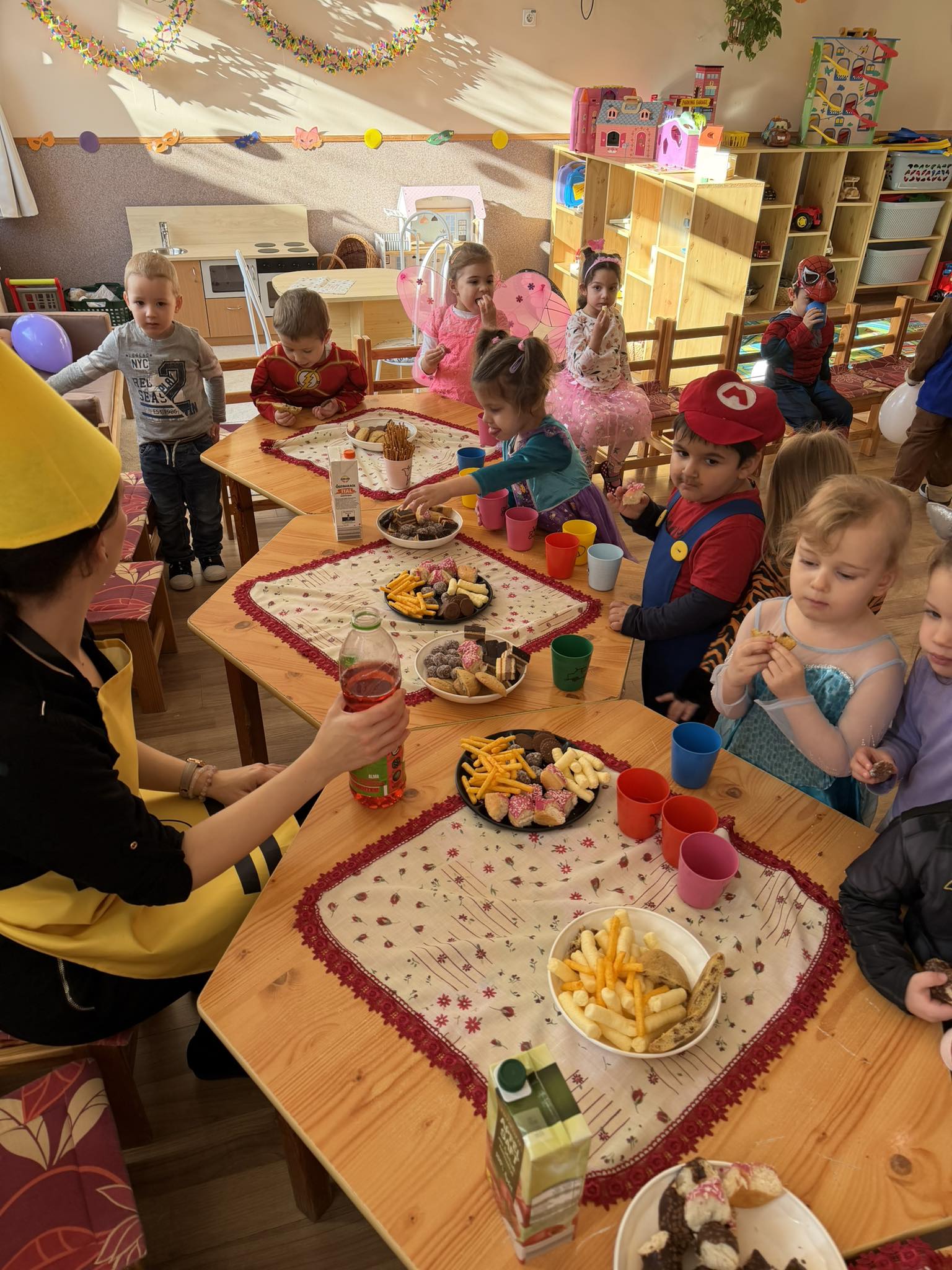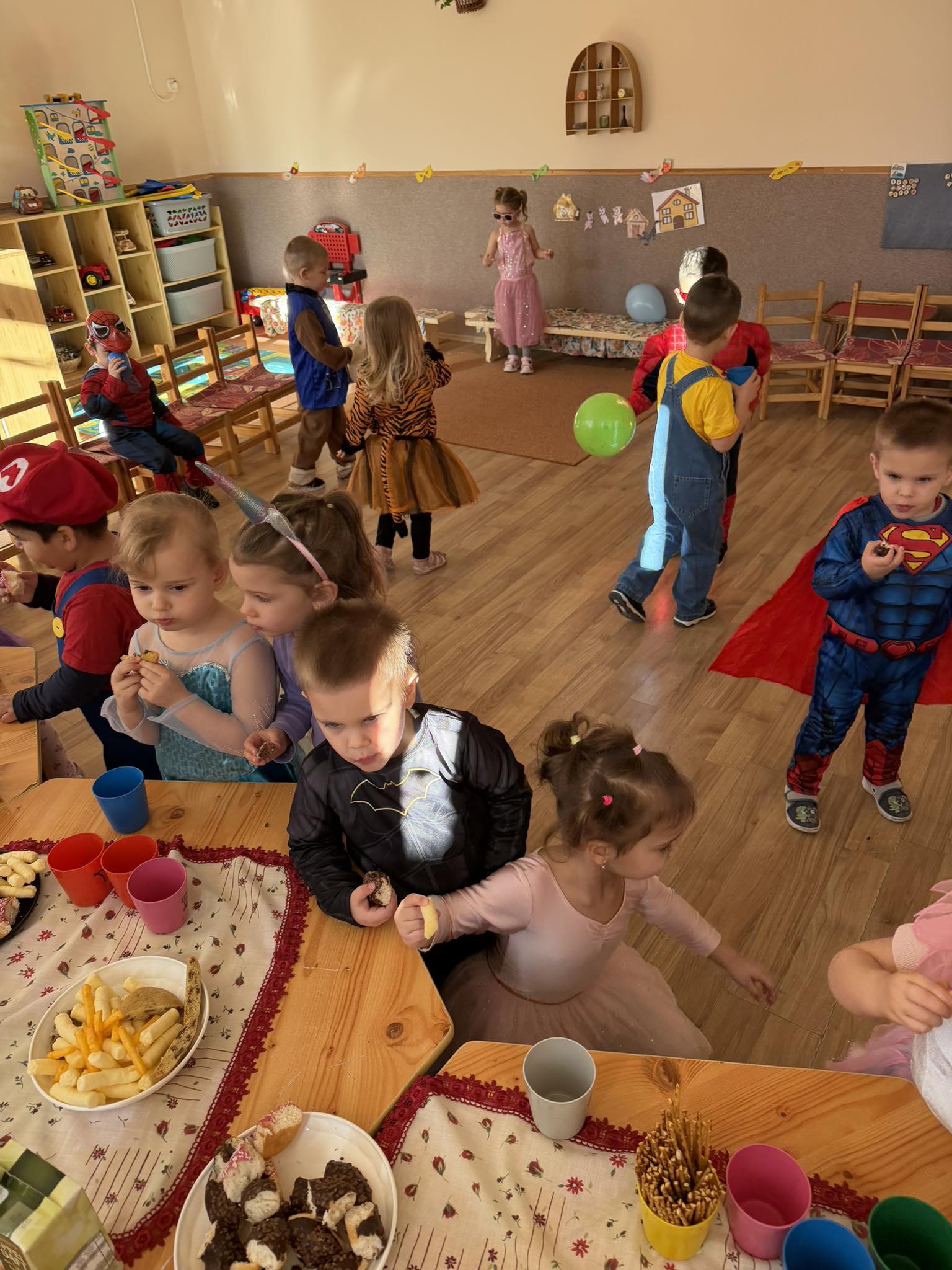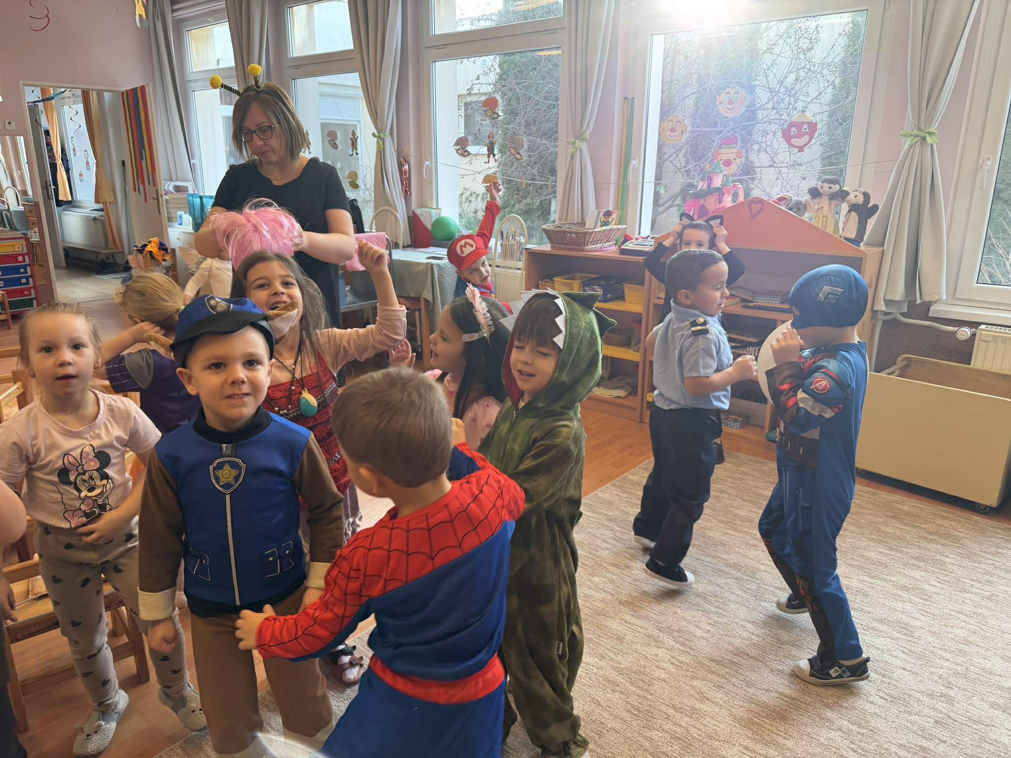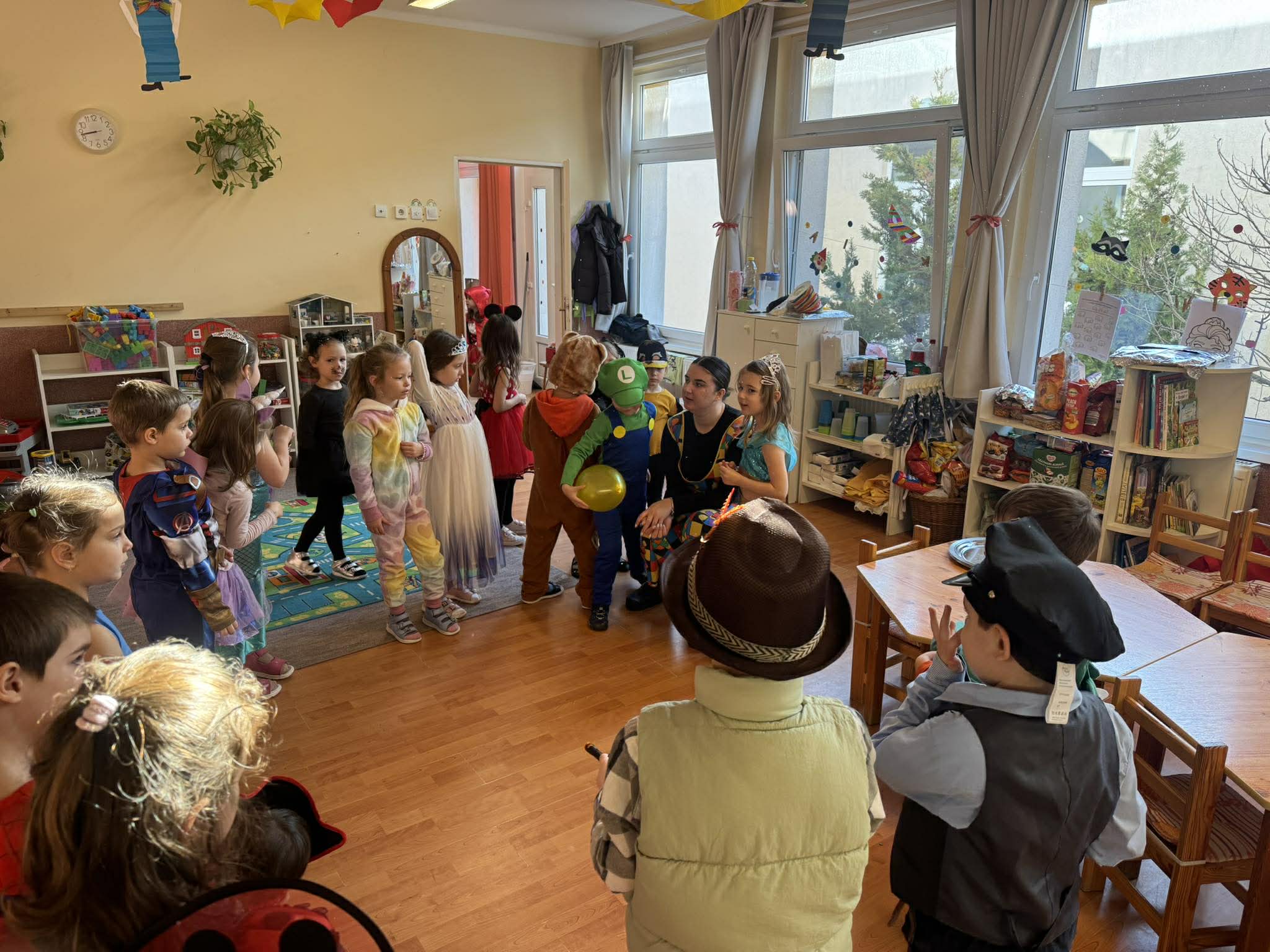 Ma délelőtt farsangi mulatságtól voltak hangosak a csoportszobák. Nagyon sok ötletes jelmezben táncoltak, játszottak a gyermekek.