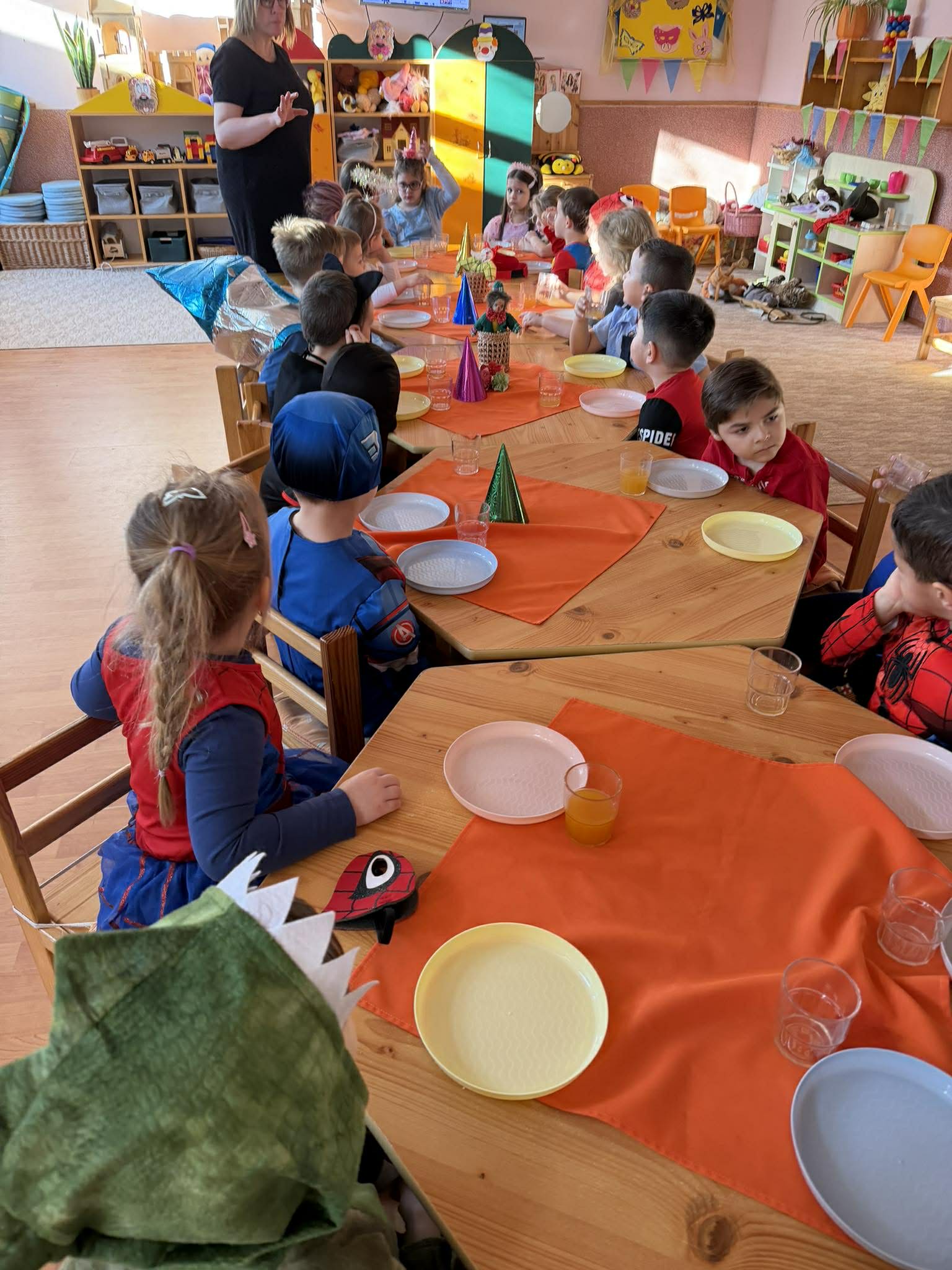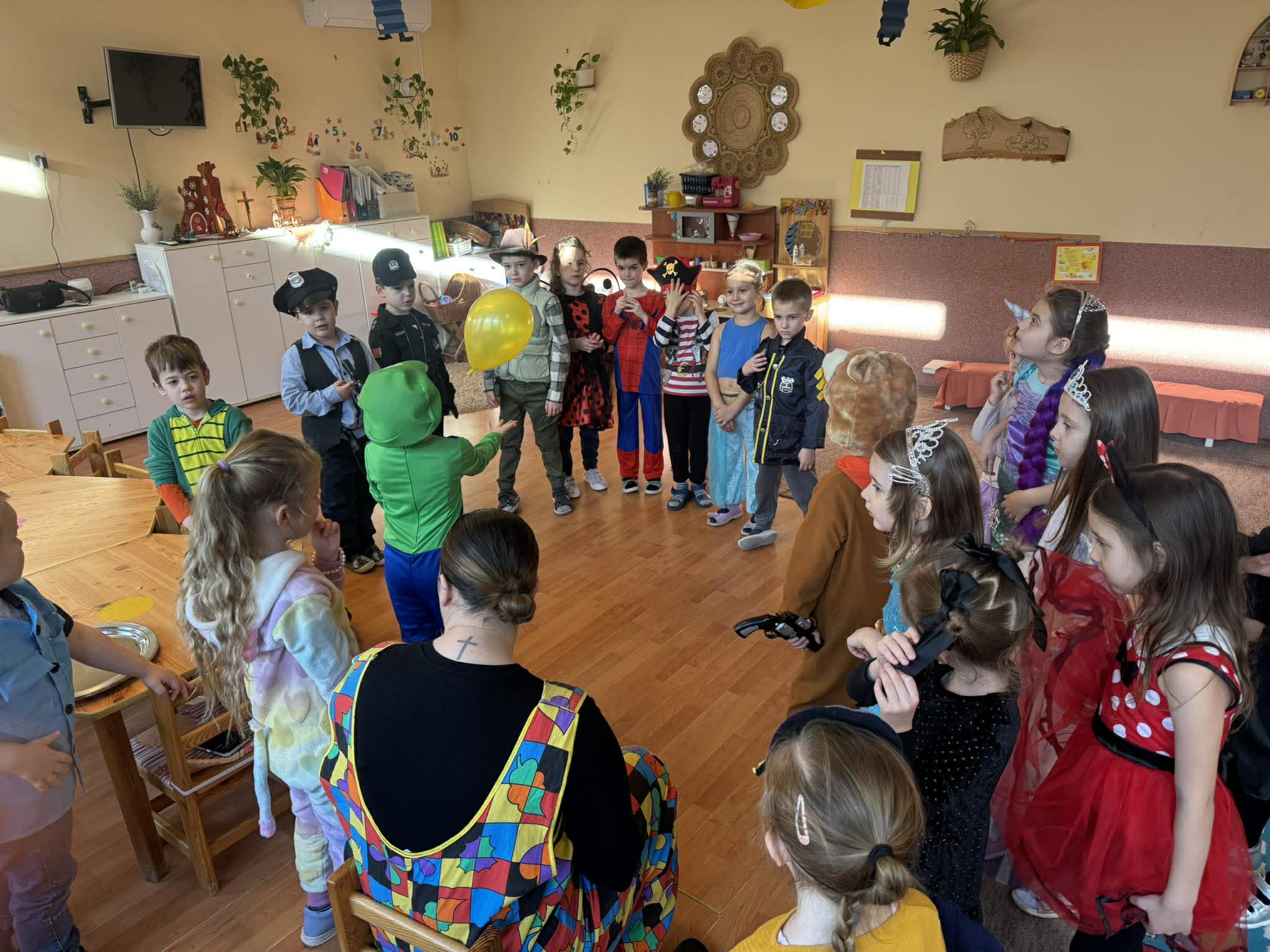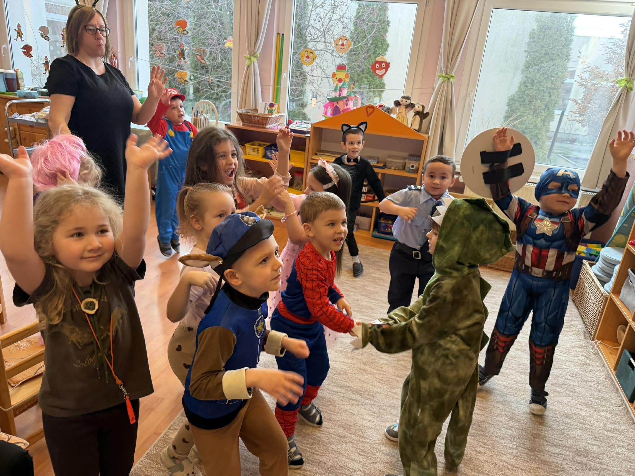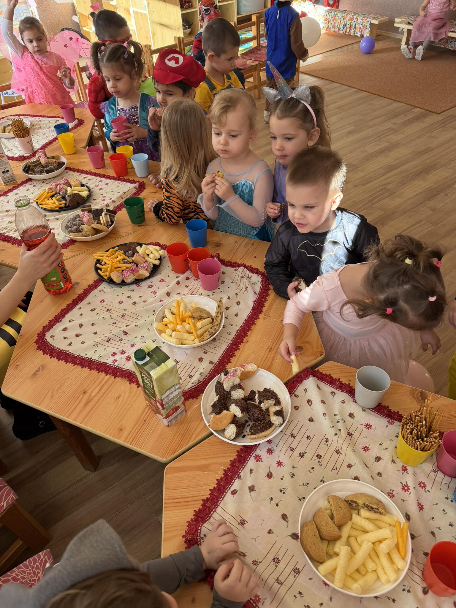 Ma délelőtt farsangi mulatságtól voltak hangosak a csoportszobák. Nagyon sok ötletes jelmezben táncoltak, játszottak a gyermekek.