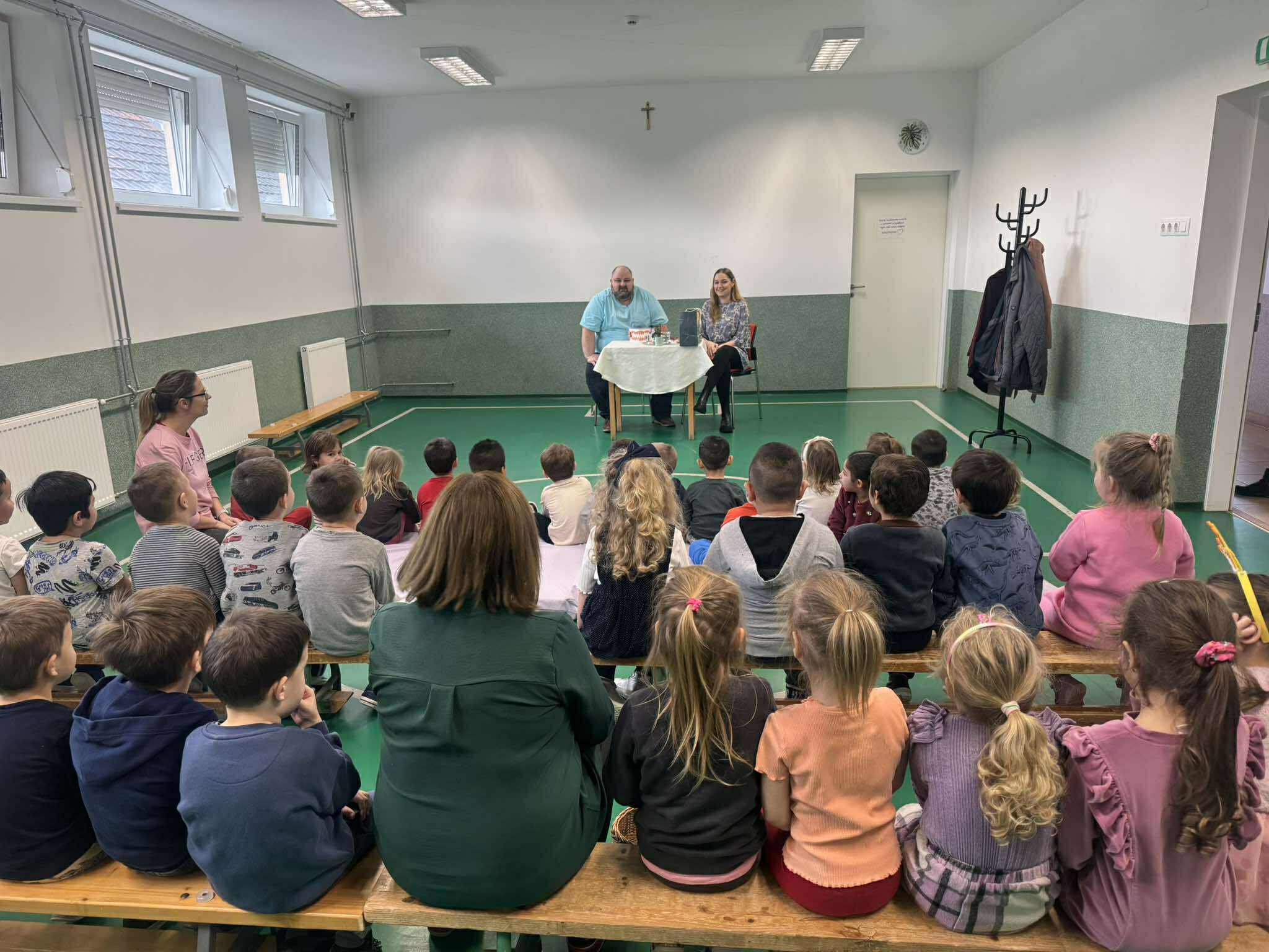 Az Egészség Hetünk nyitányaként dr. Nemes József fogorvos látogatott el óvodánkba. Köszönjük a ránk szánt idejét és a sok-sok gyakorlati jótanácsot, a gyerekbarát, kedves tájékoztatás. Óvodásaink azt a házi feladatot kapták, hogy a fogápolás fontotosságáról otthon is meséljenek, és sose feledjék a reggeli-esti fogmosást!