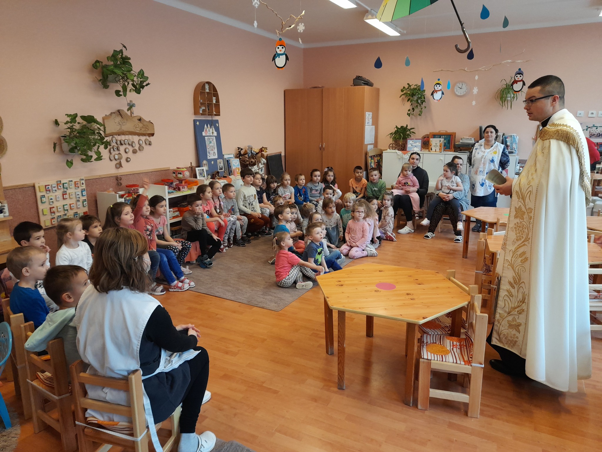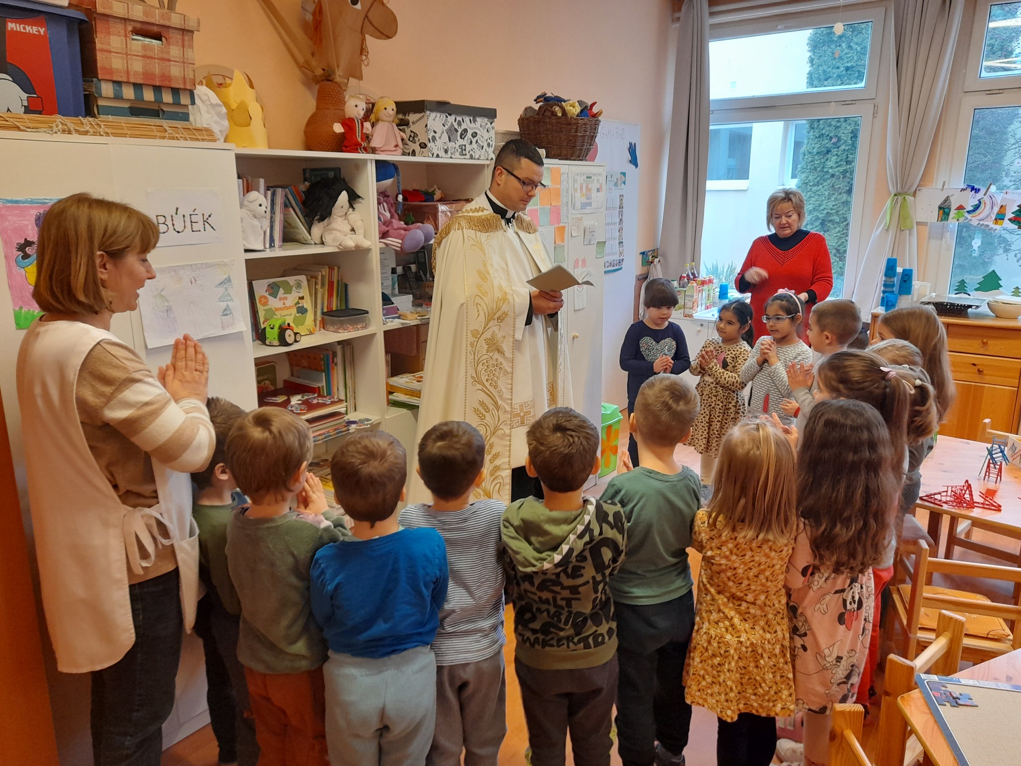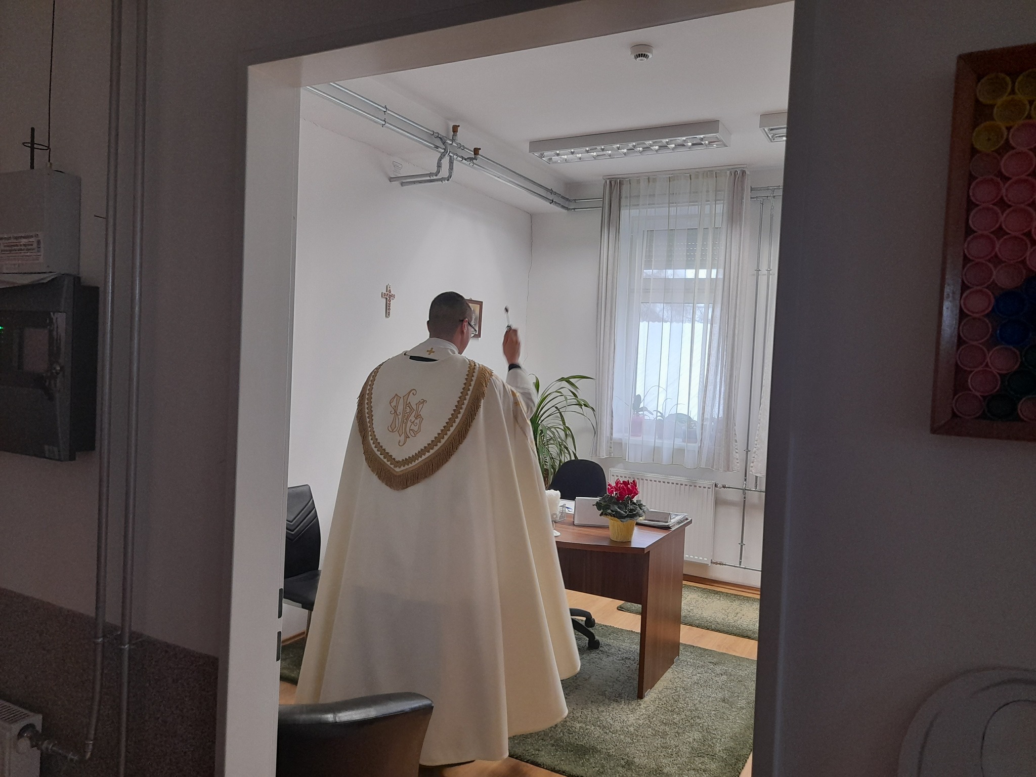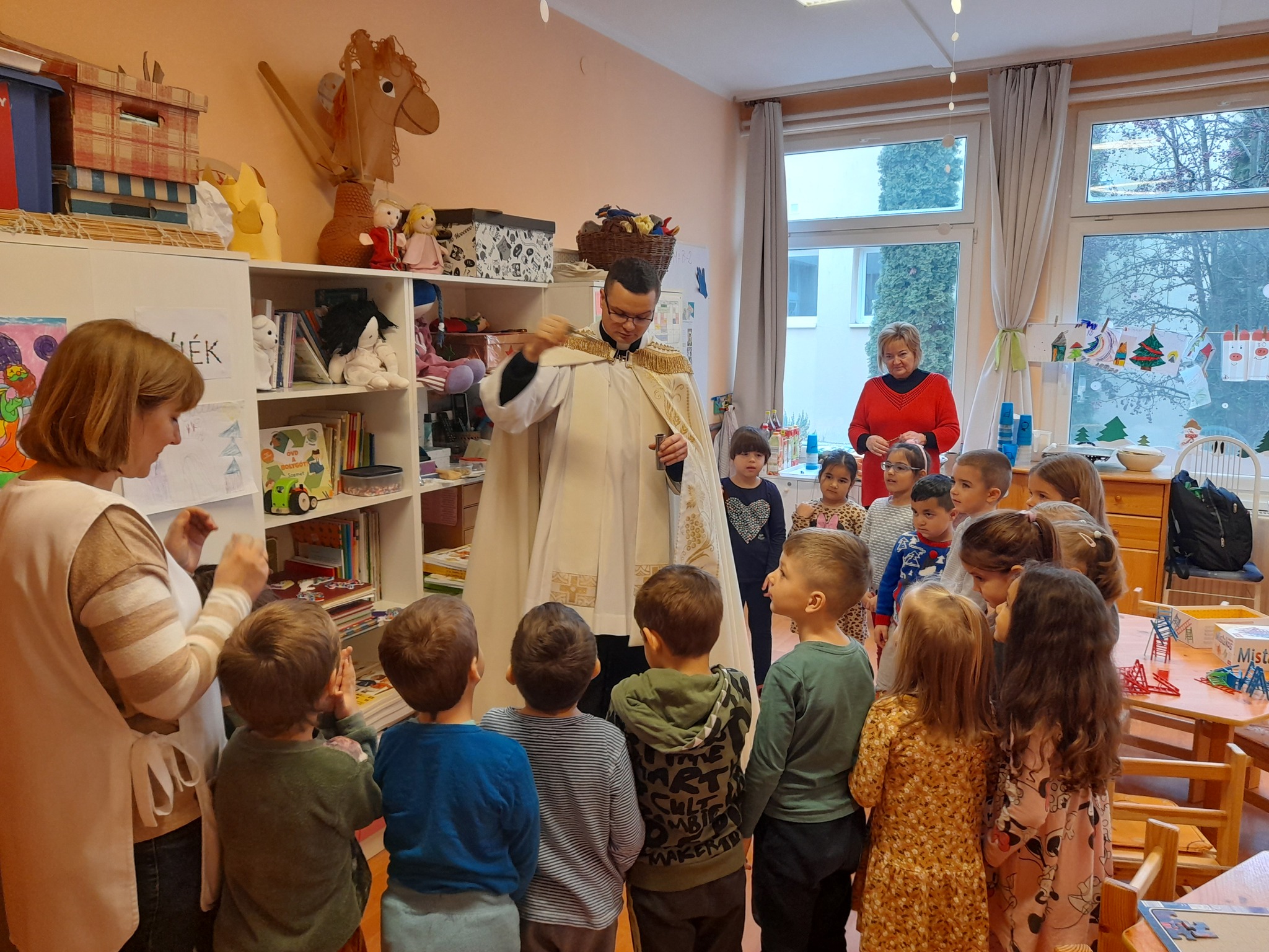 Január 13-án reggel a Halas TV forgatott óvodánkban. Délelőtt Gyirán Péter atya, óvodánk lelki vezetője a házszentelés szertartását végezte intézményünkben. Legyen áldás, békesség, szeretet gyönyörű katolikus óvodánkon! Áldás kísérje a kollégák munkáját, és minden család életét!