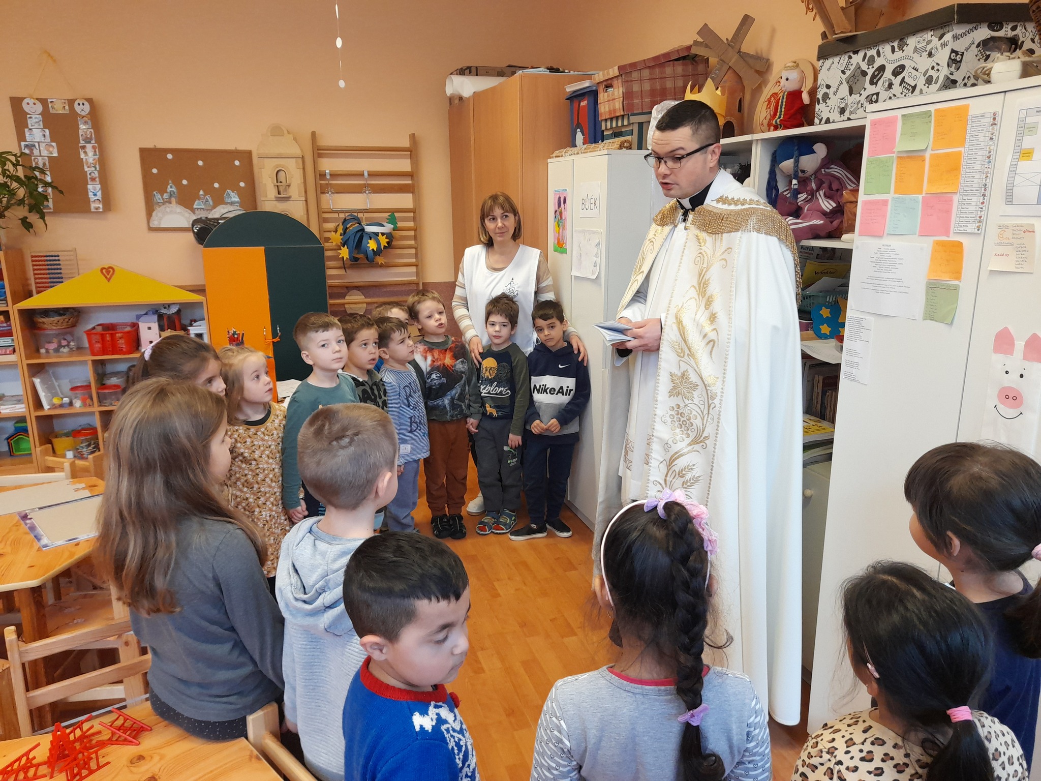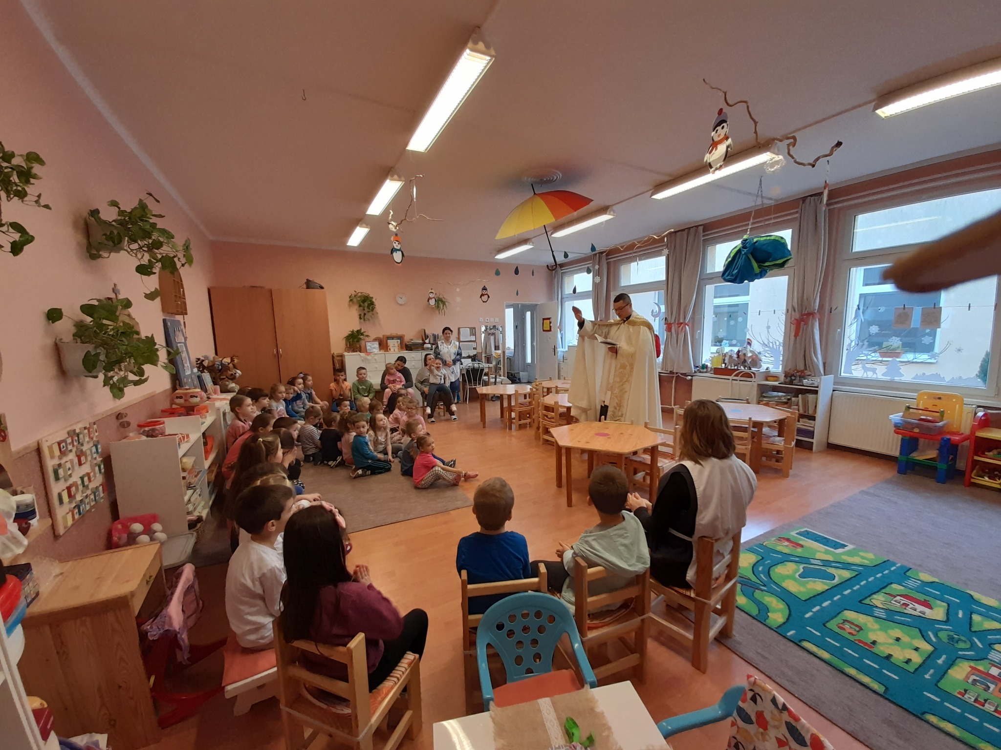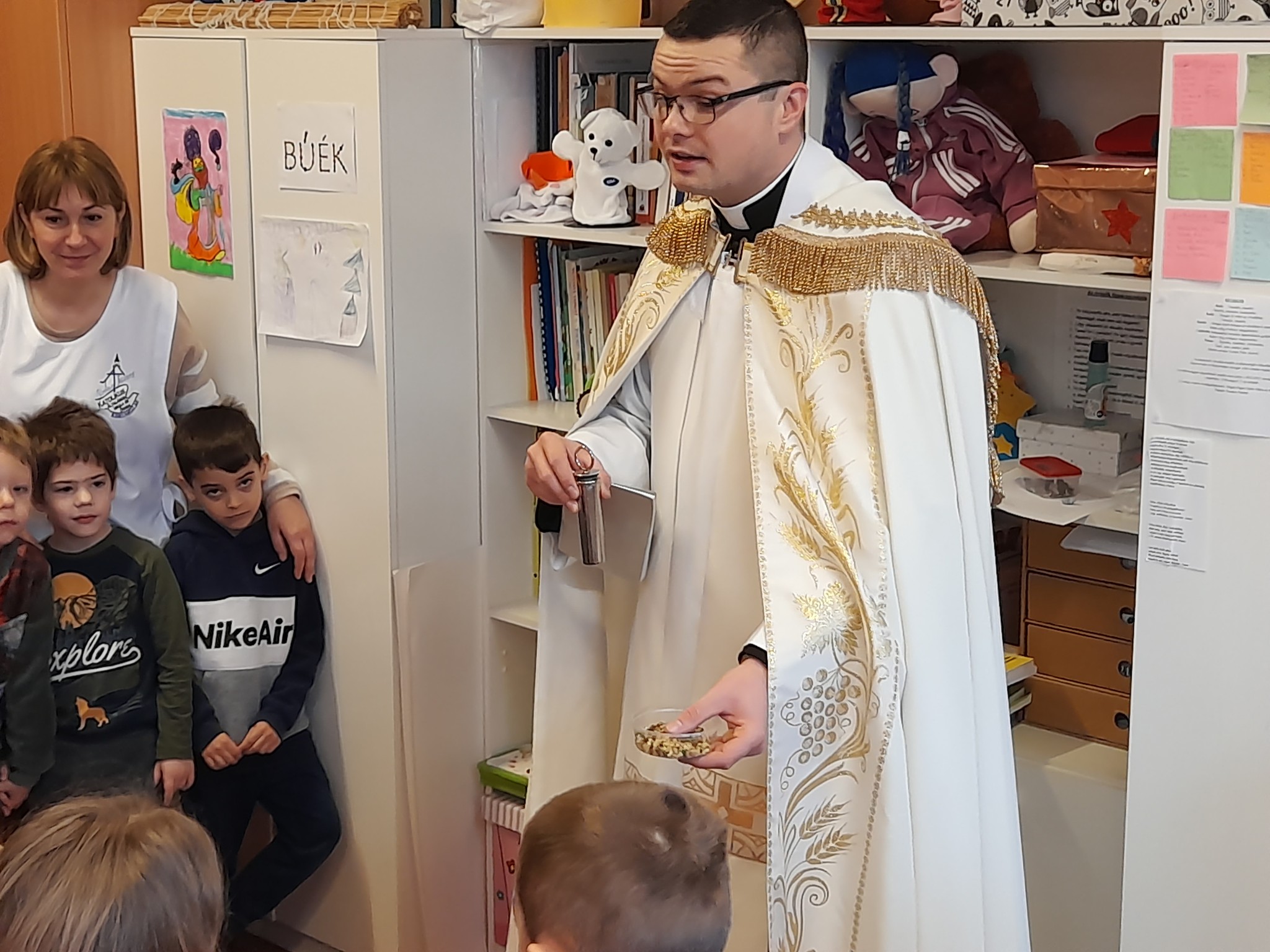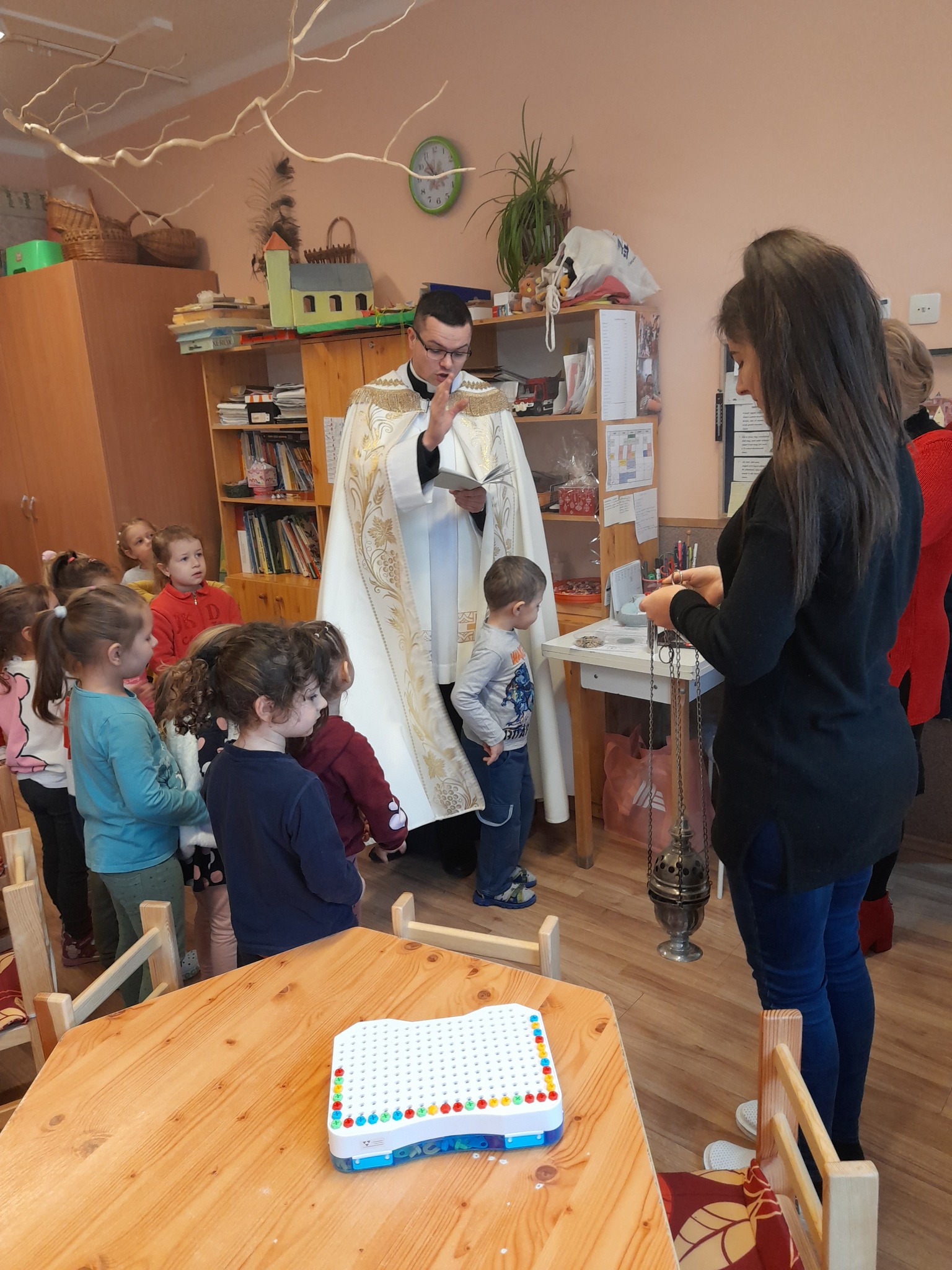 Január 13-án reggel a Halas TV forgatott óvodánkban. Délelőtt Gyirán Péter atya, óvodánk lelki vezetője a házszentelés szertartását végezte intézményünkben. Legyen áldás, békesség, szeretet gyönyörű katolikus óvodánkon! Áldás kísérje a kollégák munkáját, és minden család életét!